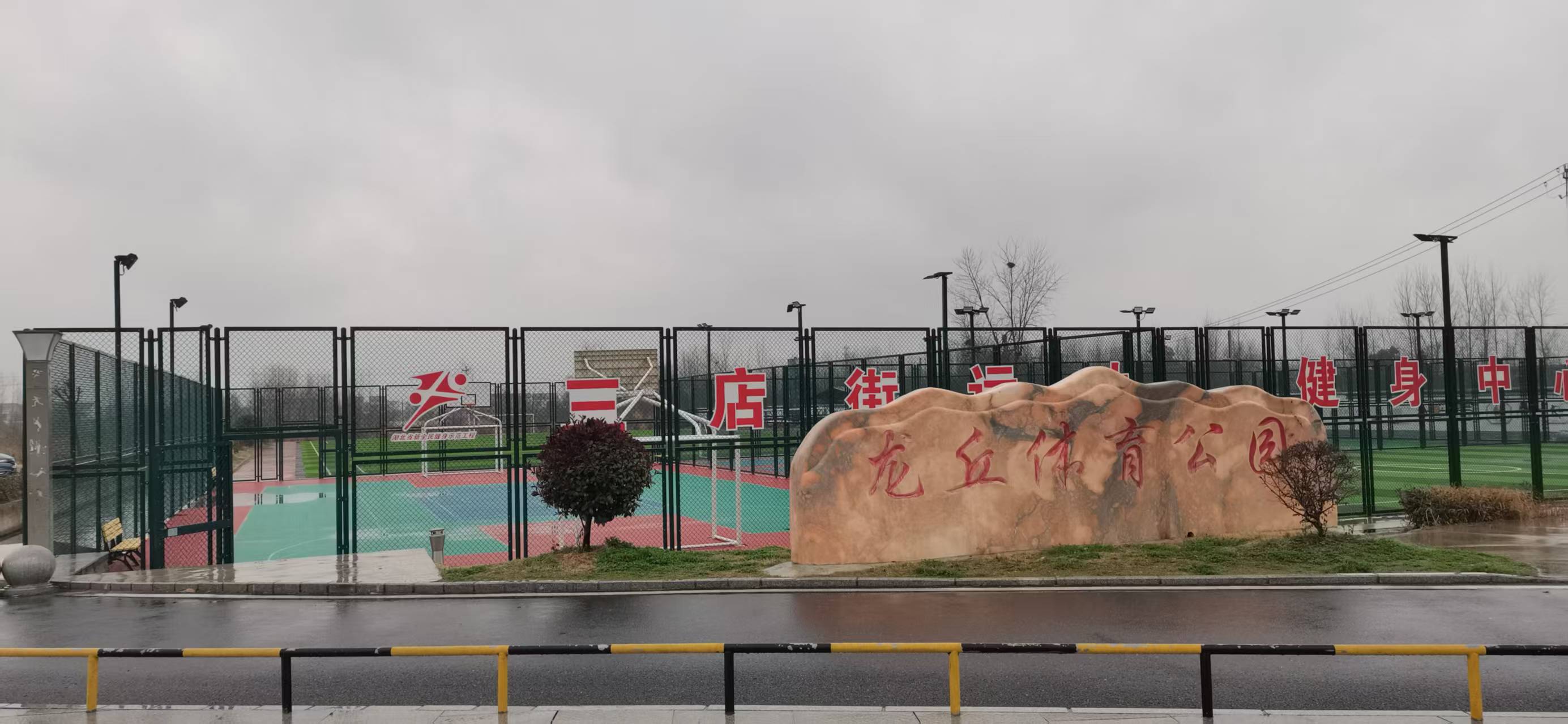三店街龙丘体育公园位于新洲区三店街龙丘文化广场,公园总用地面积5万平方米(其中健身设施用地面积2.4万平方米,室内建筑面积2200平方米,室外健身场地面积2.381万平方米),分为少年儿童运动区、多功能健身器材运动区、球类运动区等三大区块,设置有室外足球场、笼式足球场、网球场、儿童乐园等5块运动场地。