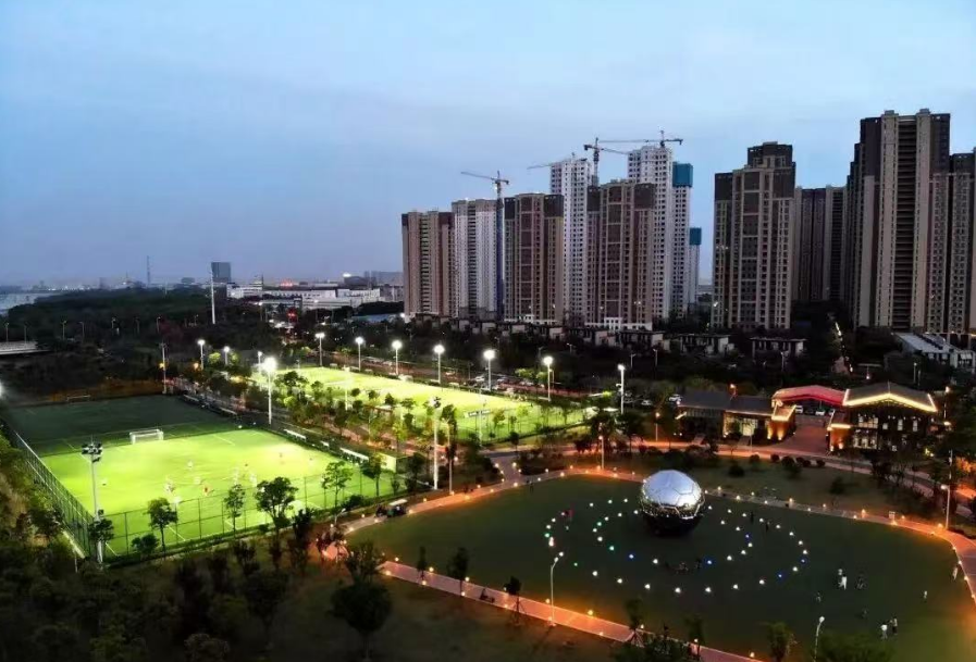 公园占地20.63万平方米,融5G智慧公园、人才公园、体育公园于一体。园区设置有湖滨休闲、阳光草坪、康养运动、健康绿道、运动球馆、办公景观等六大功能区,园区设置有羽毛球、网球、足球、篮球、乒乓球等多项运动为一体的综合性运动场馆以及2公里塑胶智慧跑道、水生运动区、太极广场,还投放了体育健康生态仓、二代智能健身器材、大众健身器材等,水域经常开展水上模型运动,满足了不同年龄段人群的体育健身运动需求。