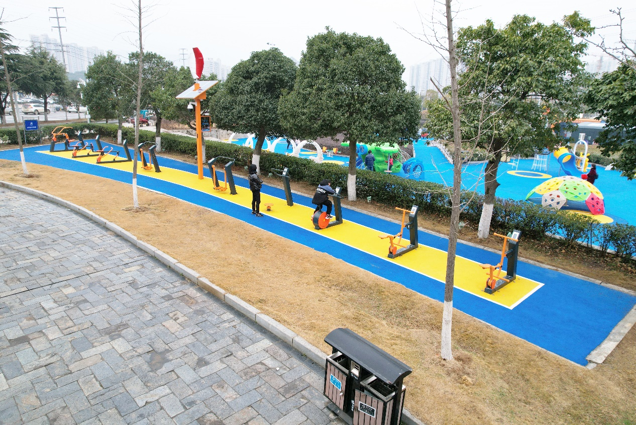 近日,武汉市江岸区金桥体育公园正式开园,园区内的微型智慧健身房、智能竞赛区、拉伸放松区、儿童乐园、篮球场、羽毛球场、乒乓球场等区域,引来无数市民前来运动健身和休闲游玩。