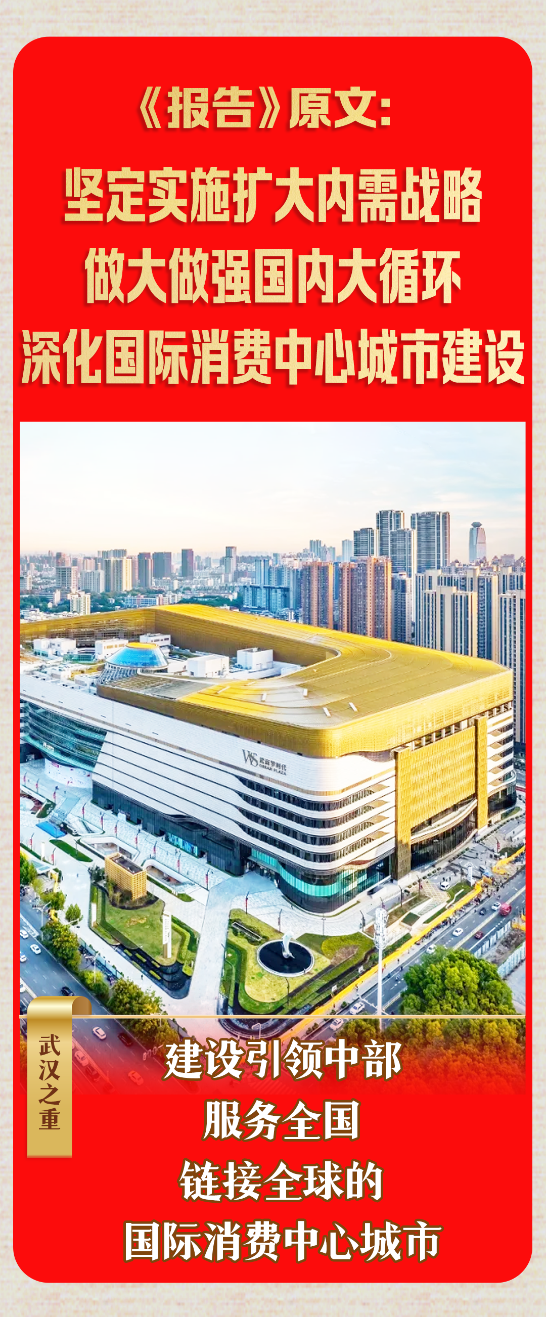 作为中部地区的中心城市和长江经济带核心城市,武汉科教资源密集、交通枢纽通达、产业基础雄厚,完全有条件打造国际消费中心城市。我坚信,以创新为引擎,以开放为路径,武汉必将成为国内大循环的重要节点和国内国际双循环的战略链接,为全国深化内需战略贡献“武汉样本”。