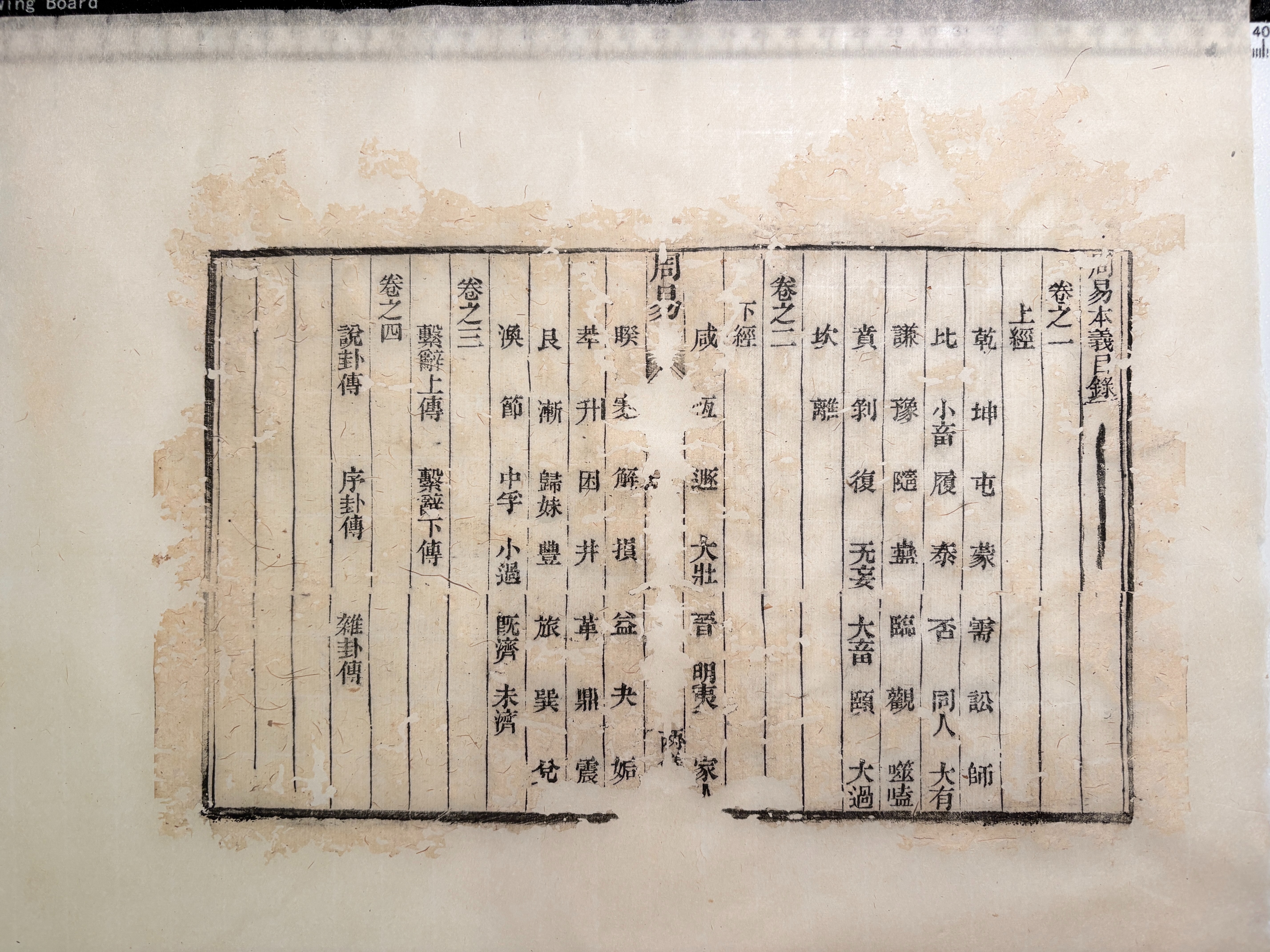 3月5日下午2时许,李洋洋正在家中修复一本《易经》,因纸张为竹纸,她猜测这是清代的古籍。“等修复完看到序章就知道准确年代了。”她穿着一件墨绿色的围裙,长发盘在脑后,坐在由餐桌改成的工作台前,用蘸水的软毛刷小心地将古籍浸湿,面前架的一部手机正记录修复过程。