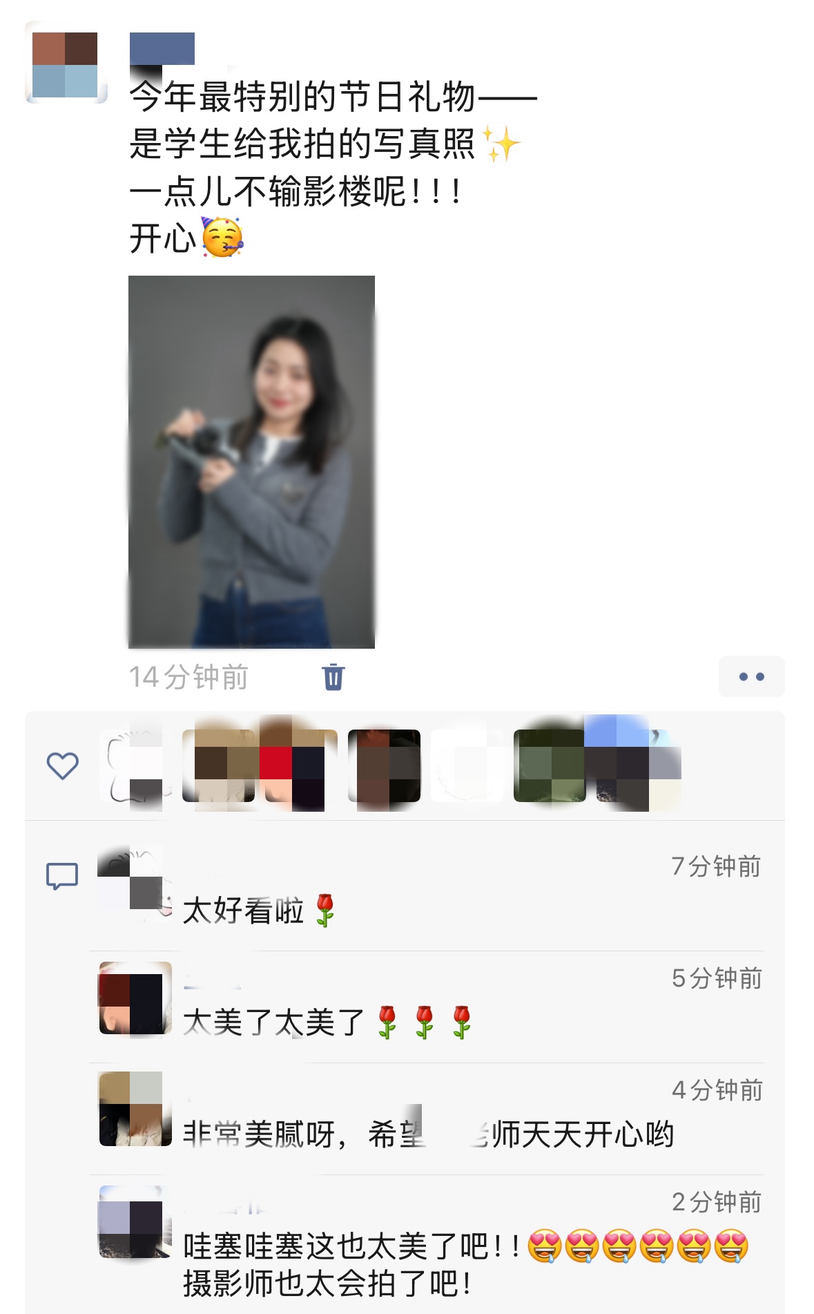 “超惊喜”“拍得真不错”“这个节日最好的礼物”……3月8日,武昌理工学院女教职工纷纷在朋友圈晒出自己收到的“三八节礼物”——个人写真照片。