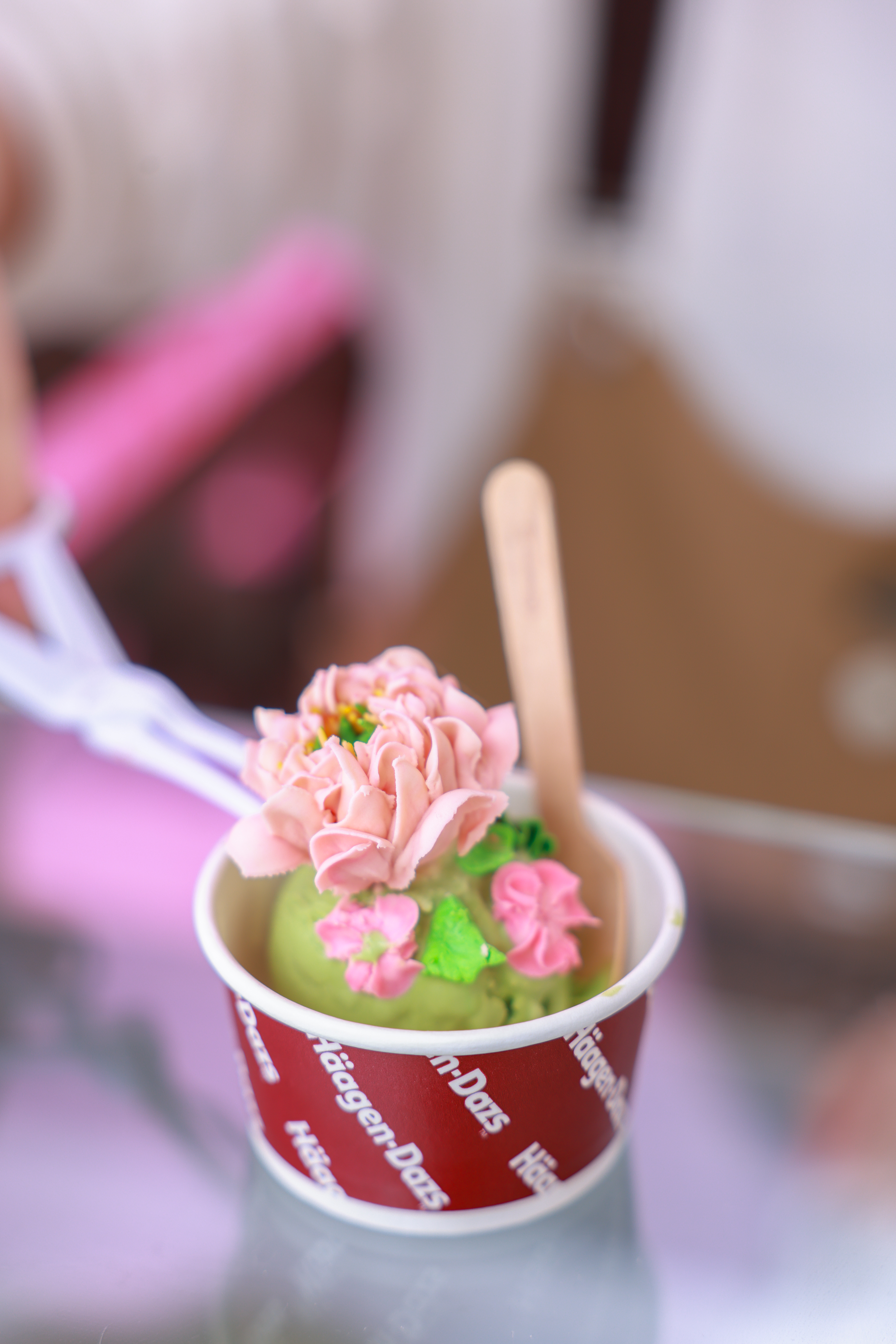 楚才韬奋书院联合哈根达斯推出周末限量款樱花冰淇淋。王熠卓 摄