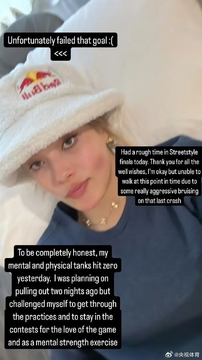 据悉,谷爱凌两个脚踝在训练中都受伤了,身体也出现了咳嗽和发烧的情况,谷爱凌表示一直在坚持,身体已经到达了极限。
