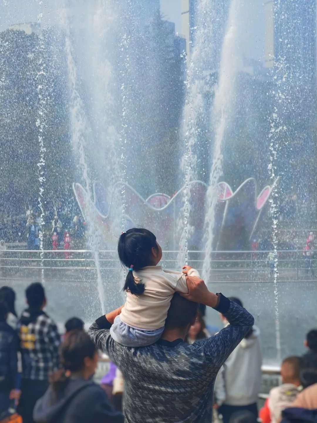 周末的中山公园,音乐喷泉准时开启,游人纷涌围观。只见水柱随着或激昂或委婉的旋律,时而直冲云霄,时而翩翩起舞,孩子们骑在爸爸宽阔的肩头,依偎在妈妈的臂弯,随着水花在空中画出各种图案兴奋得手舞足蹈,嘴里不停地飞出欢笑声。在音乐与喷泉交织的世界里,欢乐在人群中蔓延……
