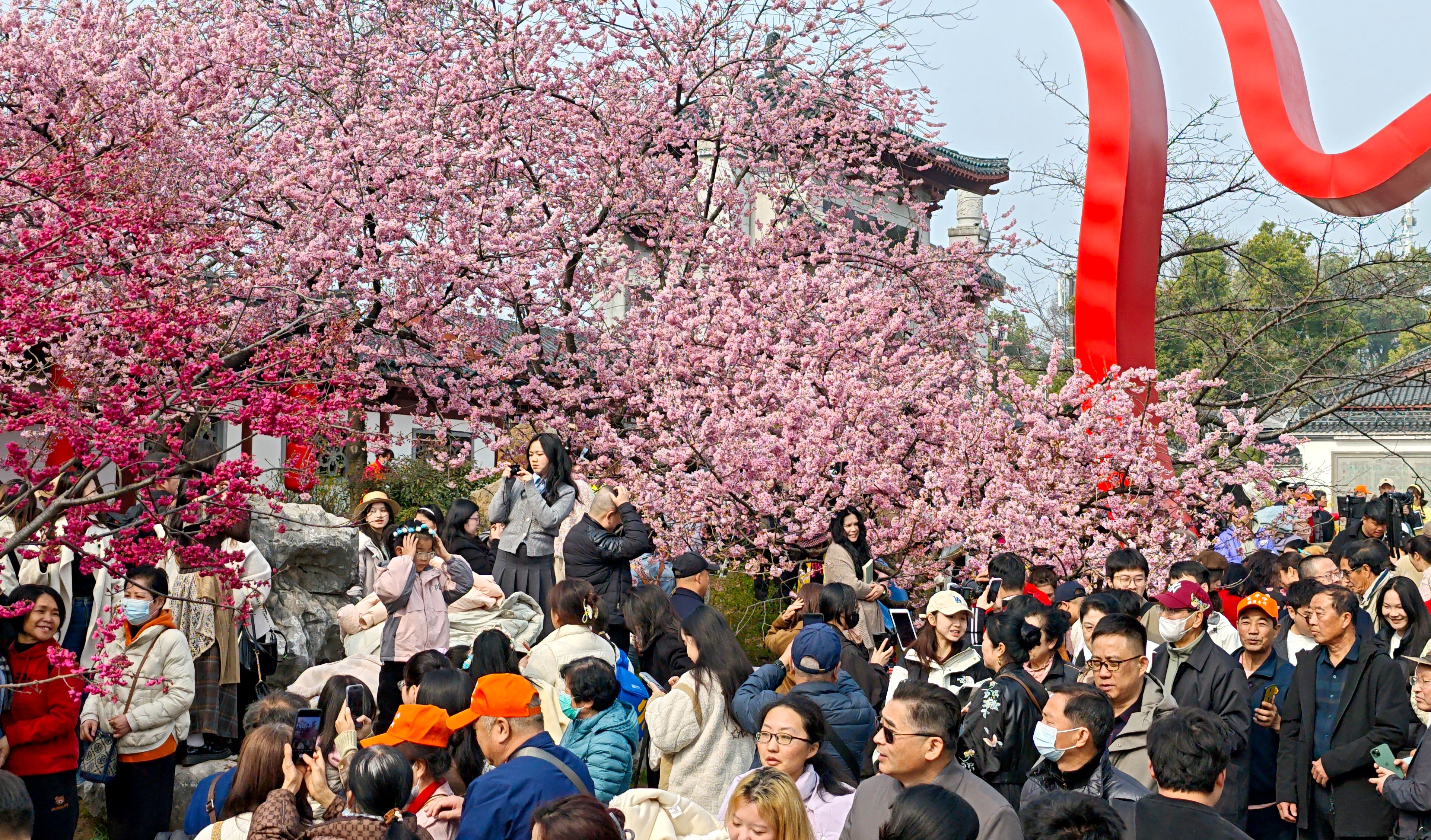 武汉赏樱热潮逐渐升温,前往东湖樱花园游览的人逐渐增多。樱花美、人潮涌,如何出行最畅通?长江日报记者了解到,今年东湖樱花园交通有优化,内外部交通“双循环”让游客来去自如。