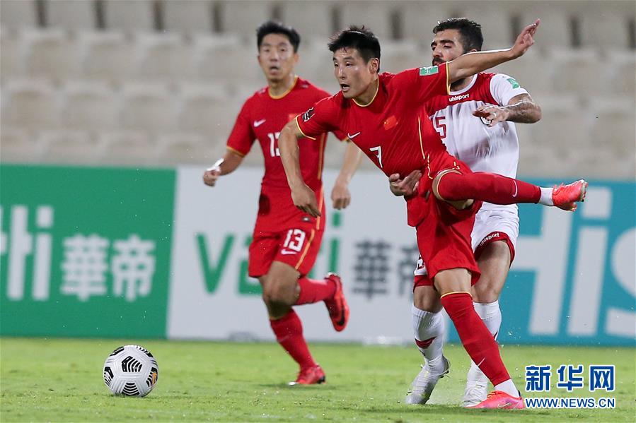 中国队球员武磊(中)在比赛中拼抢。新华社发