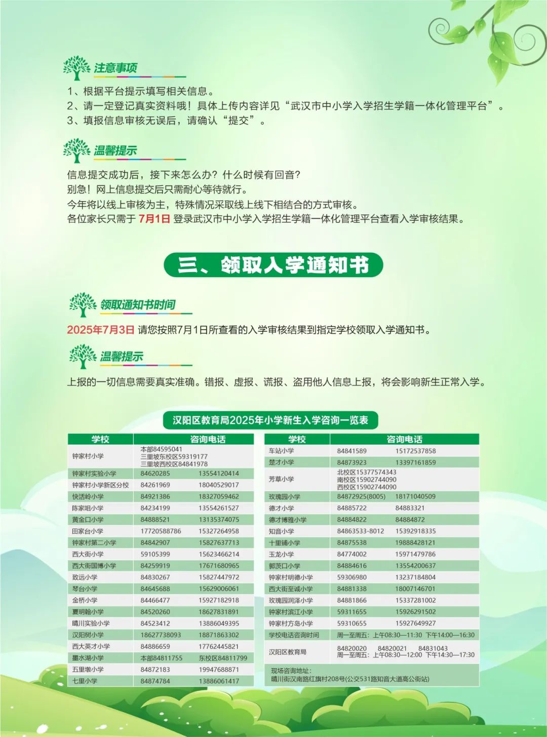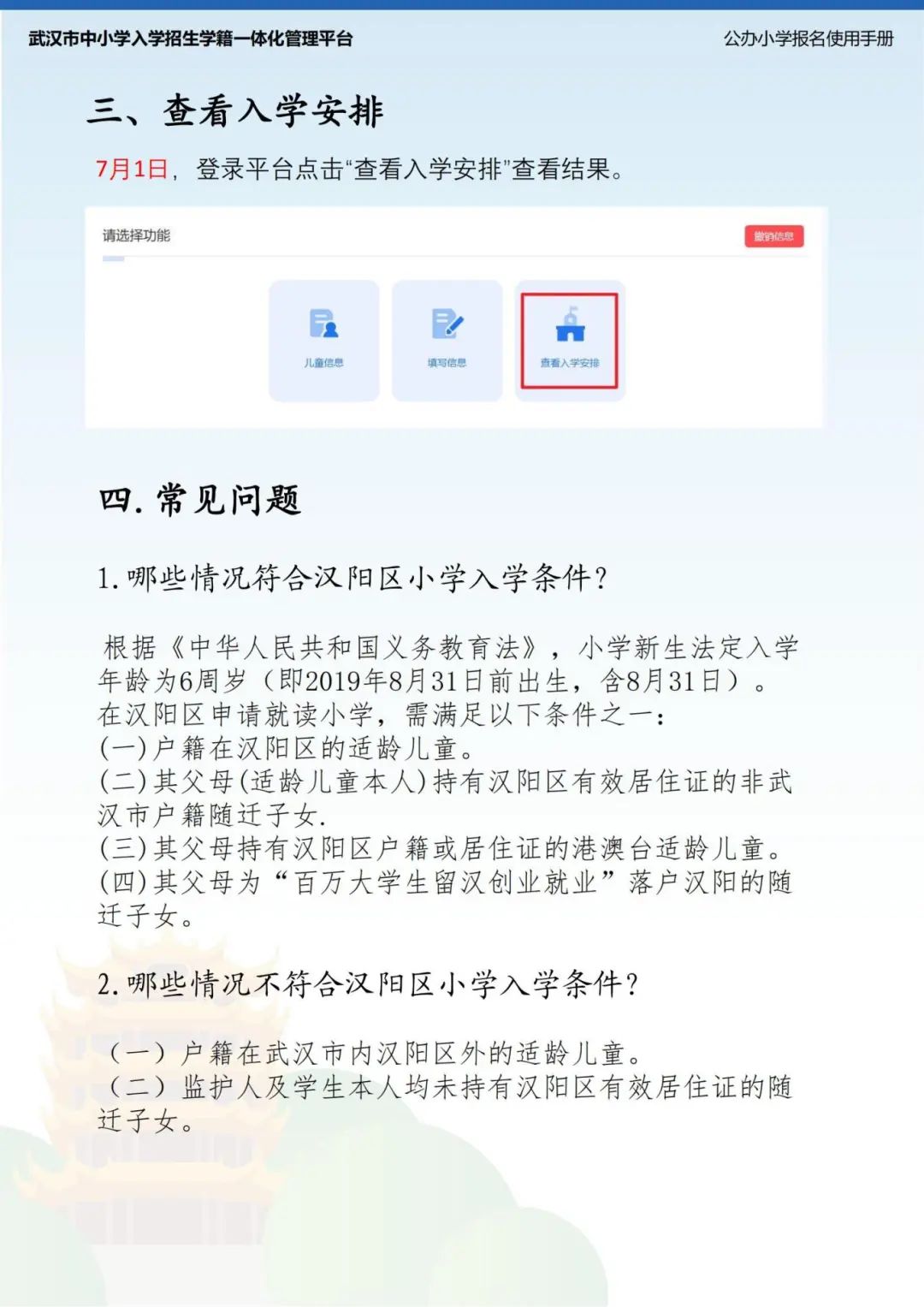 3、非本市户籍随迁子女需额外提供:汉阳区居住证(有效期内)、劳动合同(或经营许可证等合法稳定就业证明)。扰乱入学秩序者,教育局将依法追究责任。