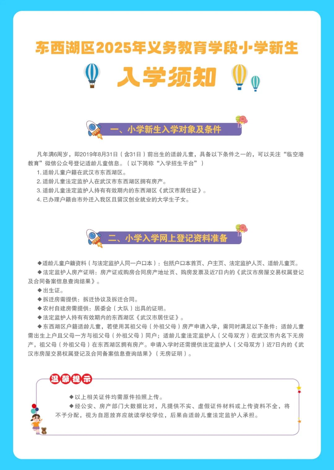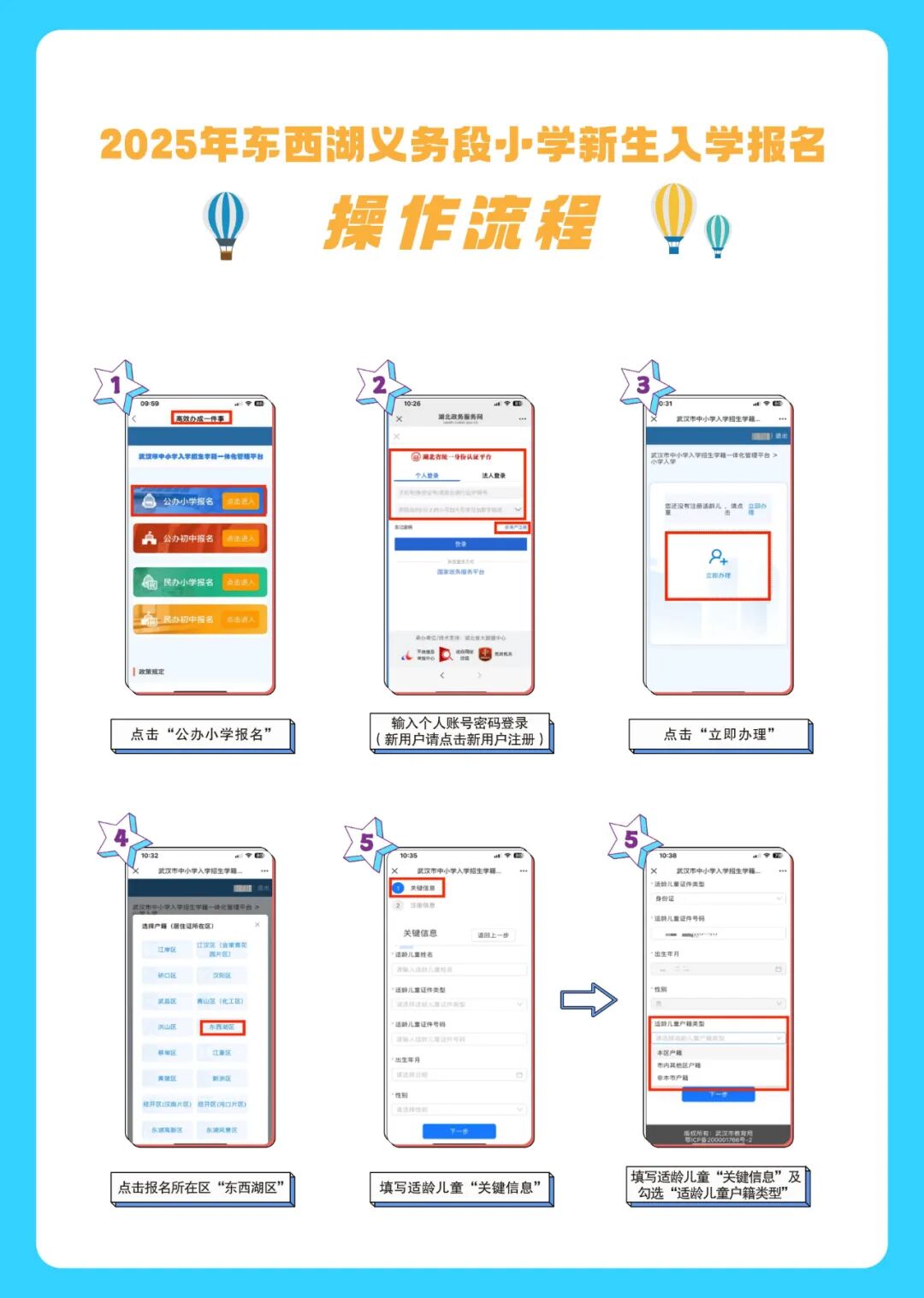 2025年东西湖区小学新生入学操作指南 2025-03-12 13:20 临空港教育 0 @全区小学新生我们,要上小学啦! 2025年东西湖区幼升小 报名操作指南 正式发布 让我们一起认真学习 新生入学须知和报名操作流程 (点击图片可放大查看) (来源:临空港教育) 【编辑:陈明】