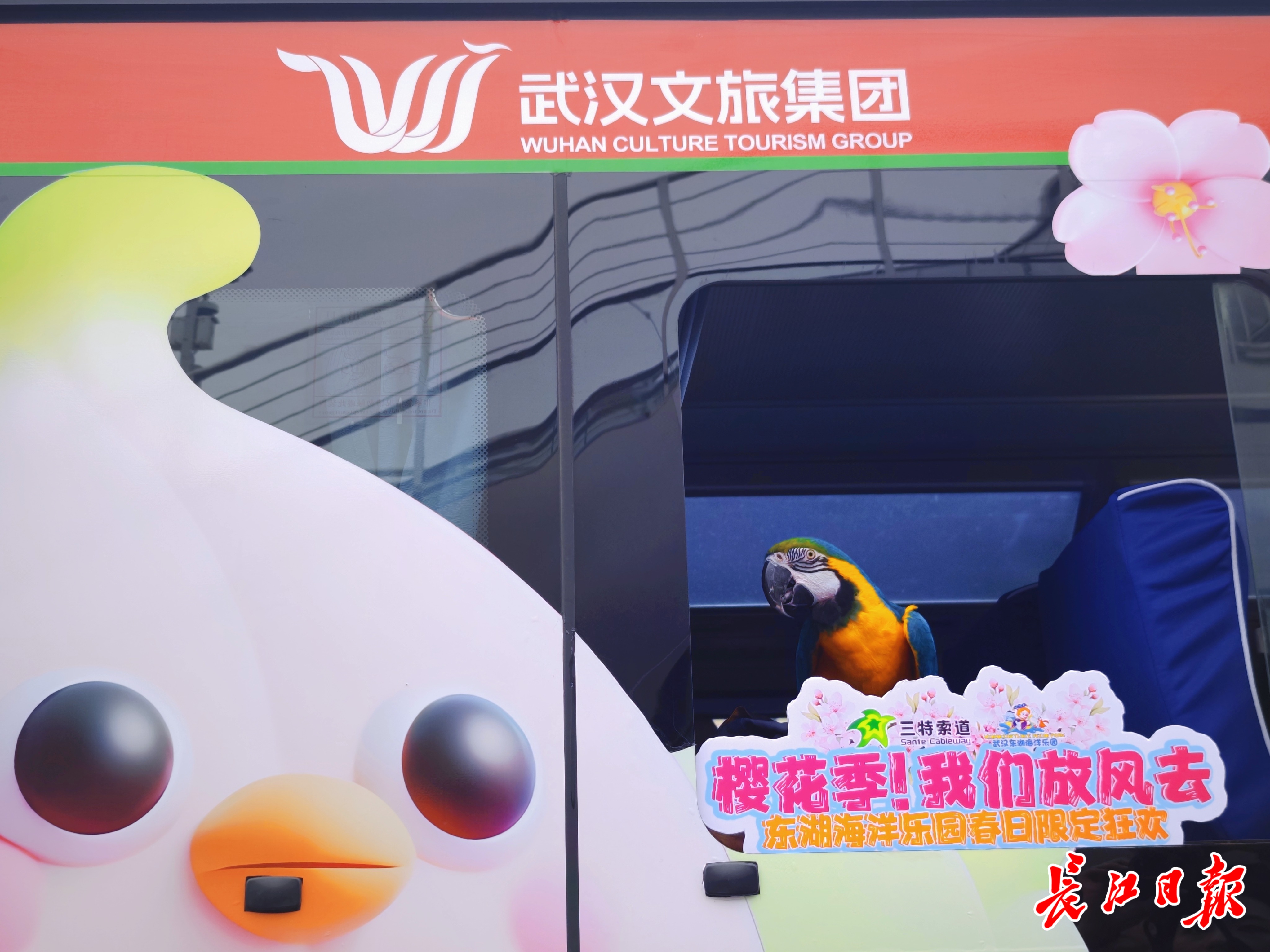 身穿黄色帽衫的小猫从巴士上探出头来,毛茸茸的羊驼在巴士旁憨态可掬,调皮的小猴站在巴士窗口看风景……武汉文旅集团推出“樱花巴士”城市观光线路,3月11日,东湖海洋乐园樱花专线启幕,车上来了一批可爱的萌宠“乘客”,吸引市民游客围观拍照。