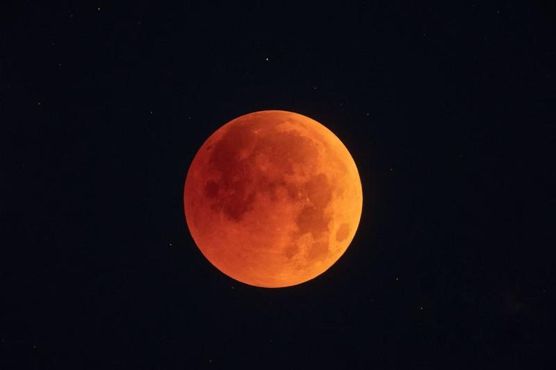2018年7月28日在内蒙古自治区乌兰察布市拍摄的月全食。(马劲 摄)