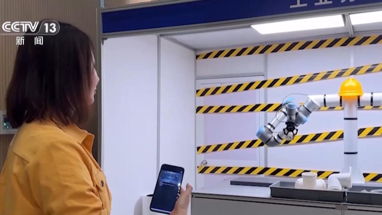 总台央视记者 张春玲:这里有一个工业分拣机器人,只要跟它通过一些简单的语音互动,就可以来去操控这样一个机器人为我干活了。给它设置一个多步骤的任务,看看能不能实现。在手机页面中,同步可以看到机器人的视角,它正在进行这些操作,全流程都是可视化的,我们看到它显示任务执行成功。这些操作的实现就是因为机器人拥有了一个非常智慧的“大脑”,同时有灵活的“小脑”来配合“大脑”共同完成任务。