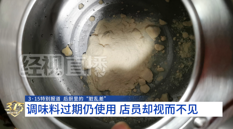 不仅如此,店员还会用过期的调味粉制作成火锅高汤,有些调味粉已经发硬结块,而工作人员对此却视而不见。