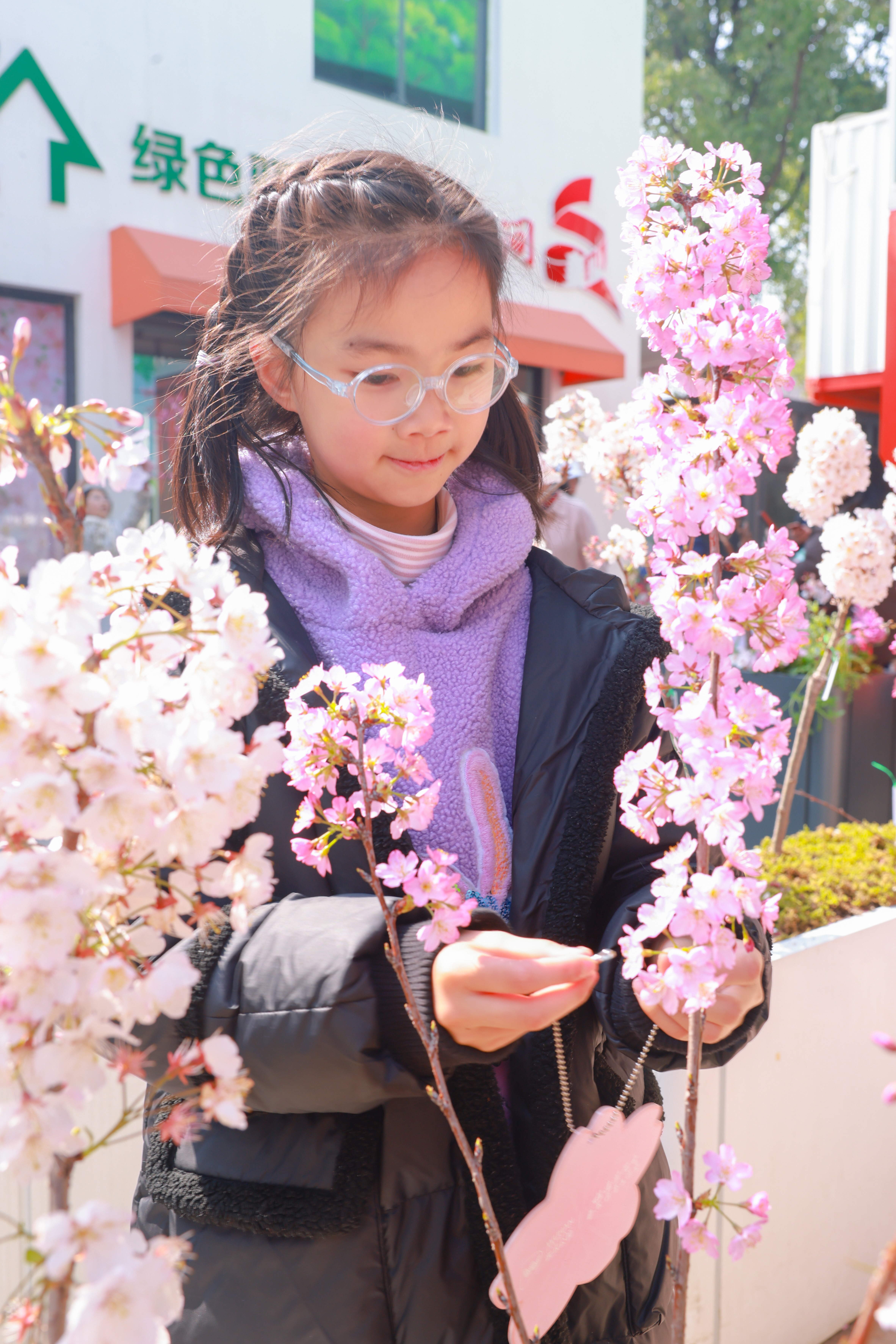 参与者在绿色驿站观察樱花花箱。王熠卓 摄