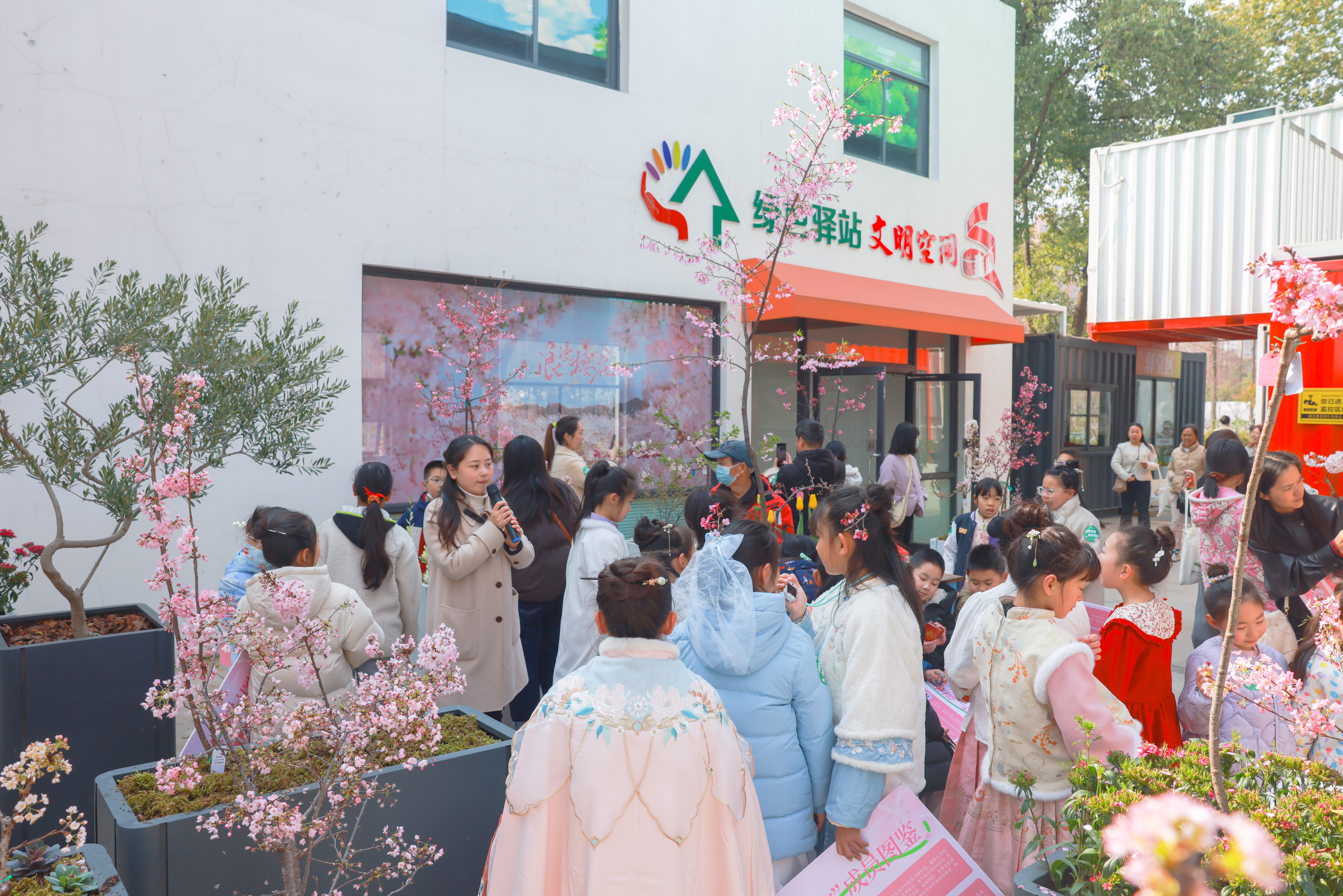 高大的树状“楚樱”主要生长在试验田里,而位于市园林科学研究院大门东侧的绿色驿站内,一组组花箱内低矮樱花树唯美绽放,吸引络绎不绝的游客拍照合影。