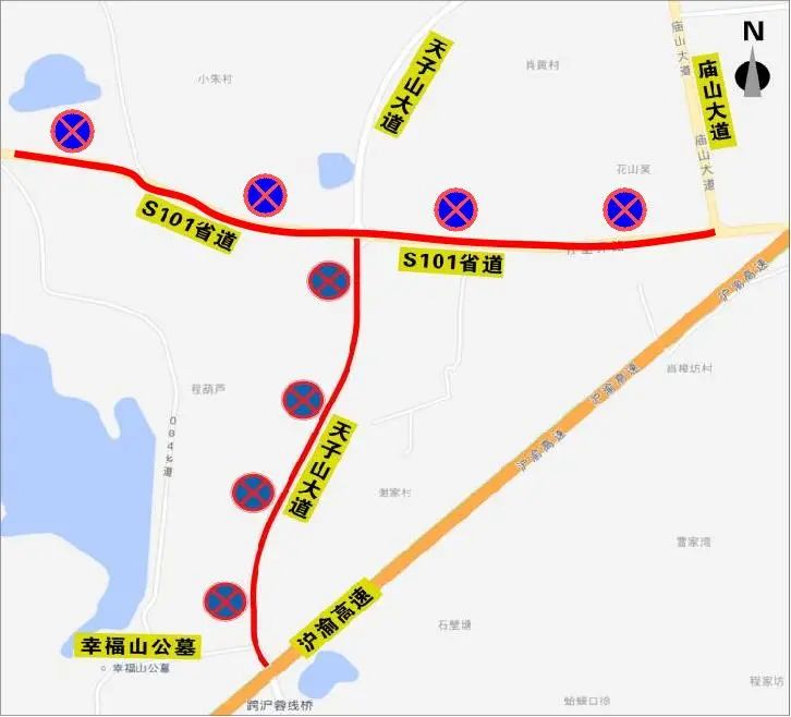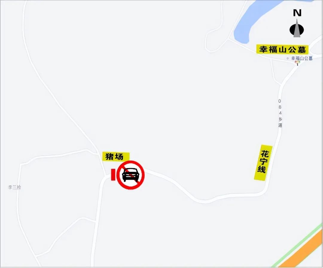 3、花宁线李三捡湾猪场三叉路口:临时封闭东侧路口,禁止机动车进入幸福山公墓园区;