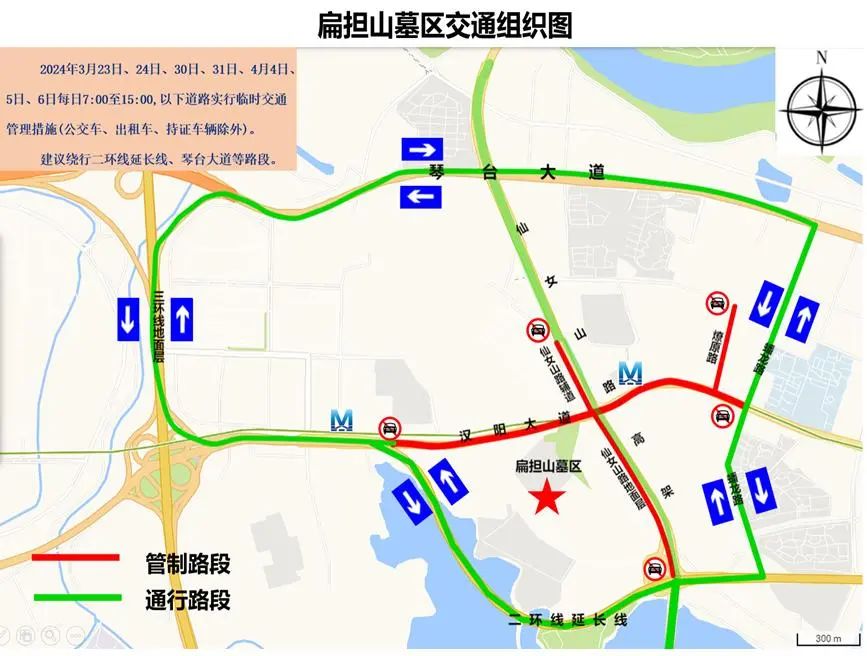 同时,为保障国省道及进出城道路的交通顺畅,江夏区交通大队将于2025年3月29日、30日,4月4日至6日,每日7:00-12:00,对部分易拥堵路段进行交通疏导,届时将视情采取临时管制措施,引导车辆有序通行。
