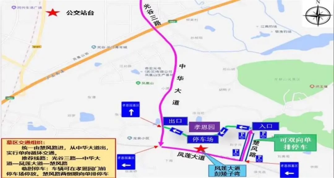 武汉市东湖高新区交警针对辖区内八大墓区发布了详细的交通管制措施、公共交通指南及停车场信息。请广大市民提前规划出行路线,尽量选择公共交通,错峰出行,文明祭扫。