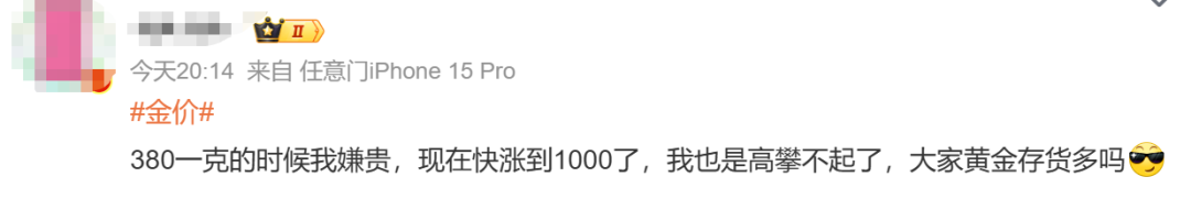 有网友称,“现在的金价已经超出理解的范围了 。”