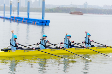 武汉和鹭代表队的四位参赛选手为本次大赛最小年龄参赛选手,他们在U12岁男子四人双桨比赛中面对比他们大出2—3岁的选手不畏不惧,最终获得了该组别第一名的好成绩!年仅的8岁谢游云说:“虽然这两天武汉降温,但湖面风力正好,非常有利于创造好成绩。”
