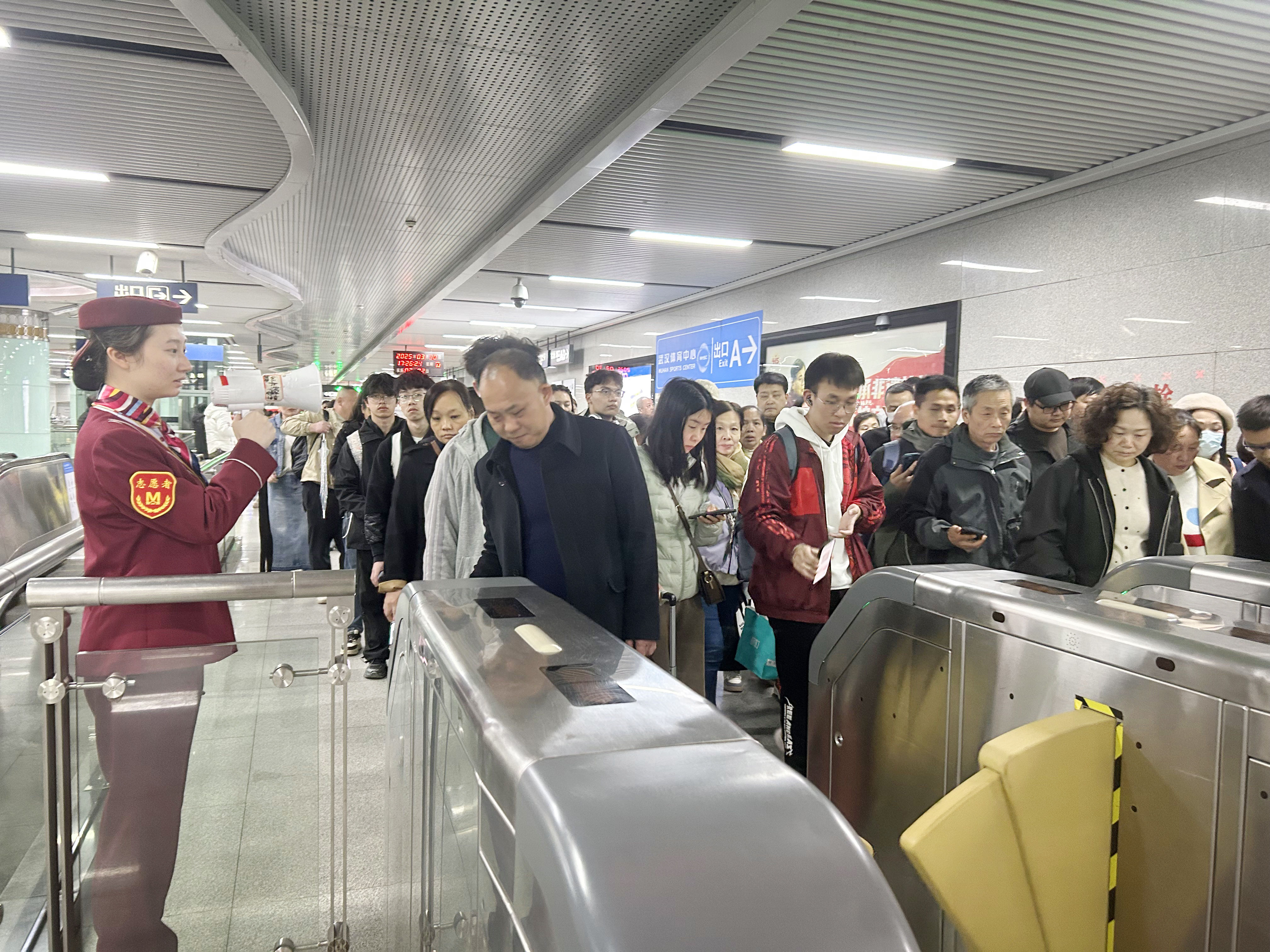 3月29日、30日,刀郎演唱会在武汉体育中心体育馆激情开唱。来自全国各地的歌迷从当天上午开始陆续抵达,3号线体育中心站客流增加明显,演唱会夜间结束,3号线体育中心站、3/6号线东风公司站迎来歌迷客流小高峰,相关车站启动相应预案,保障乘客进站快速有序。