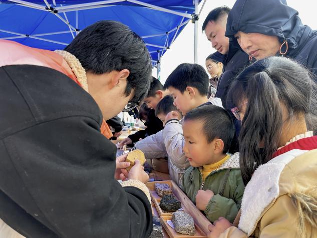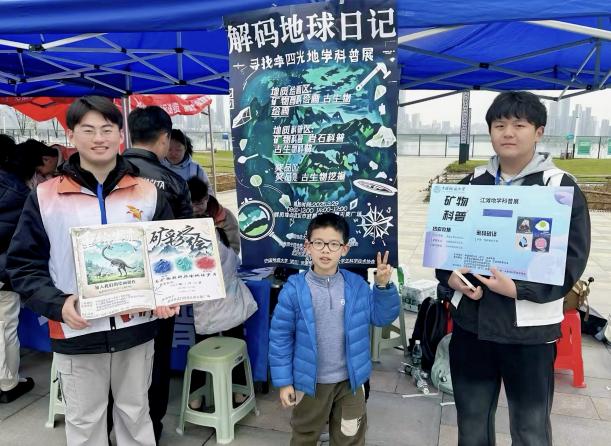 本次地学科普展分为“地质绘画:如何绘画矿物、古生物”“地质科普:矿物岩石基本知识讲解”“有奖问答:古生物挖掘”三个展区。