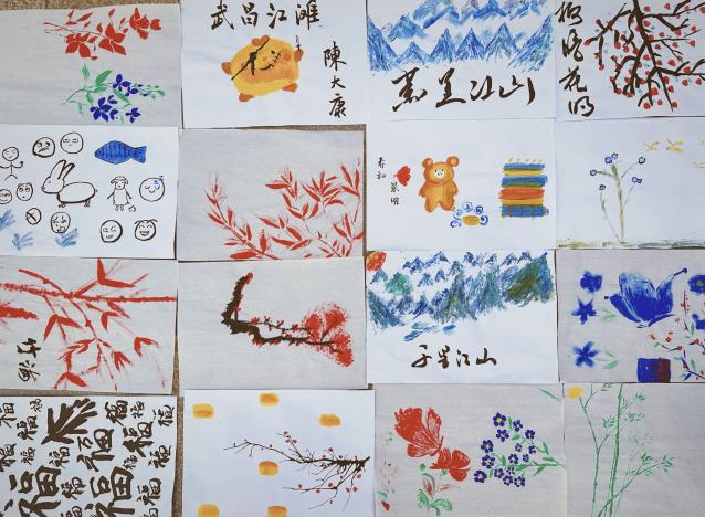矿物绘画区成了小朋友的乐园。“辰砂、蓝铜矿、孔雀石”等矿物摇身一变,化为五颜六色的颜料。在中国地质大学(武汉)的志愿者们耐心细致地指导下,小朋友手中一张张美丽的画卷与矿石完成了一场时隔千年的美丽邂逅。