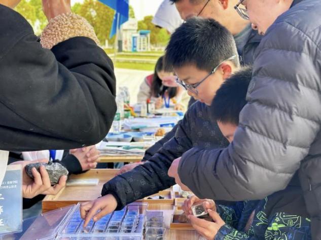 在地质科普区,一件件精美的矿物岩石吸引了众多兴致勃勃的市民朋友。三大岩类的区别、古生物化石各异的形态、五彩斑斓矿物的形成……中国地质大学(武汉)的志愿者们通过通俗易懂的语言,向市民群众们讲述着地球最初的故事。