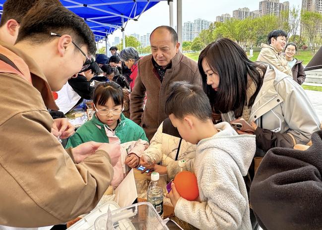临近活动尾声,来参加活动的武汉市民依然不愿离去,很多小朋友也还在认真聆听志愿者们的讲解。
