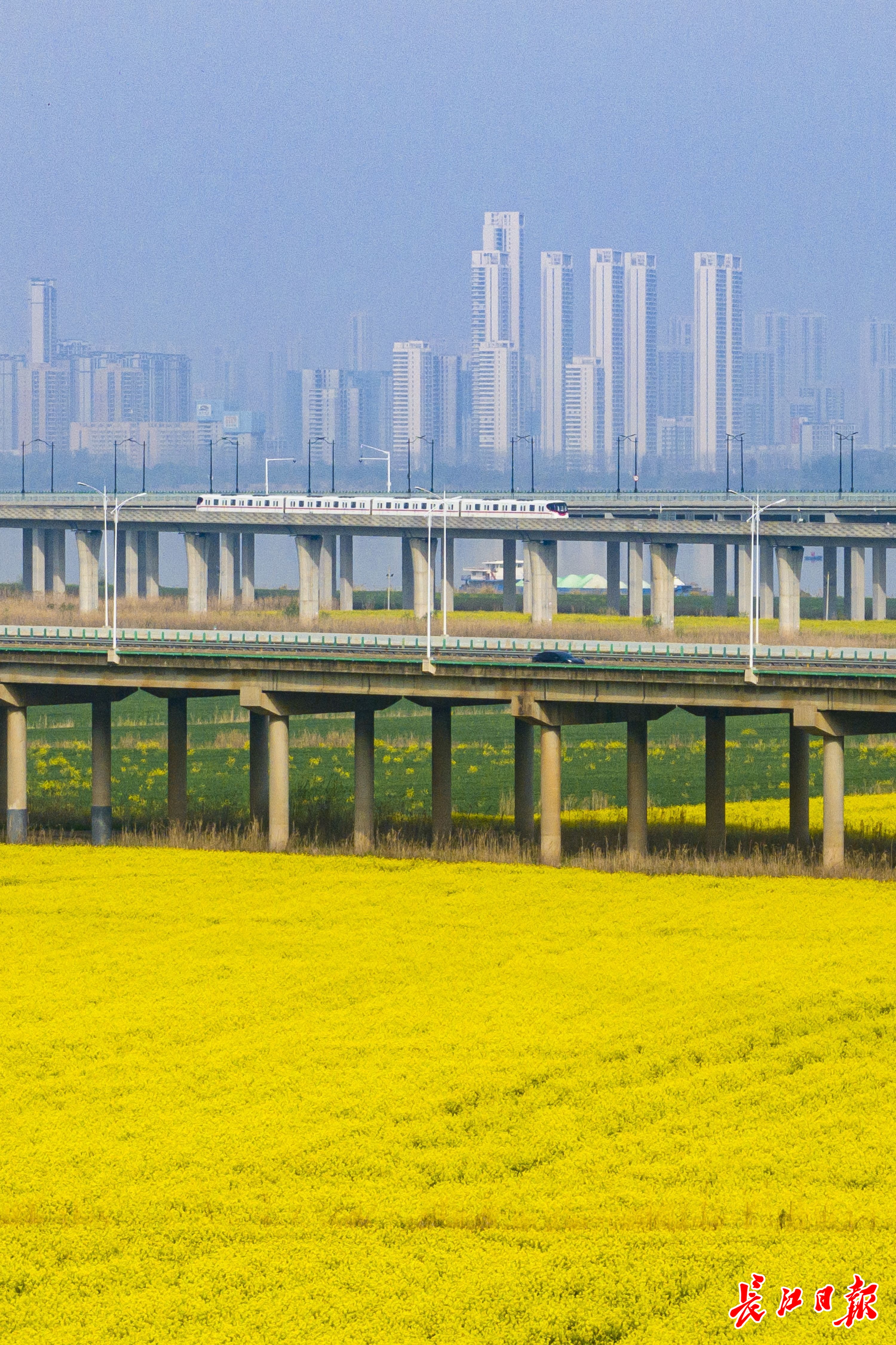 目前,武汉的油菜花已进入最佳观赏期。市民可乘坐武汉地铁16号线,从沌口站至小军山站,沿途感受这片金色花海的魅力。