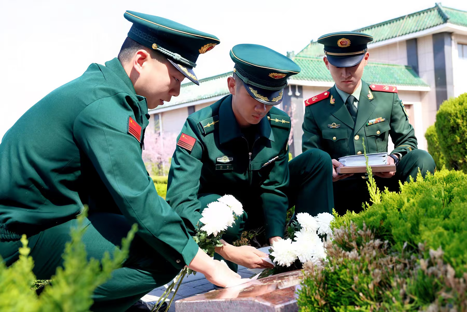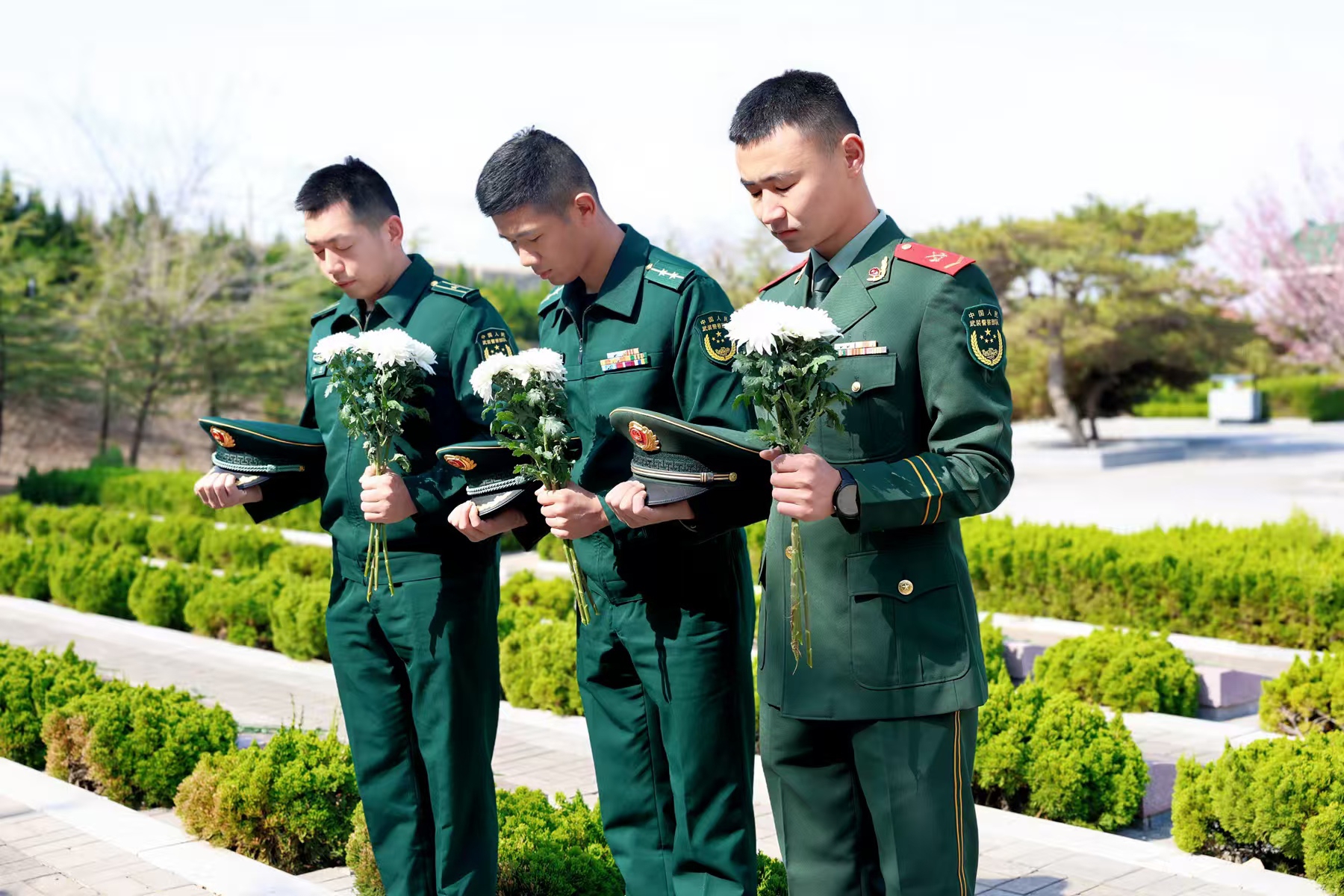 走进新泰市烈士陵园,官兵们静静伫立在李林雨烈士墓碑前追思李林雨烈士。