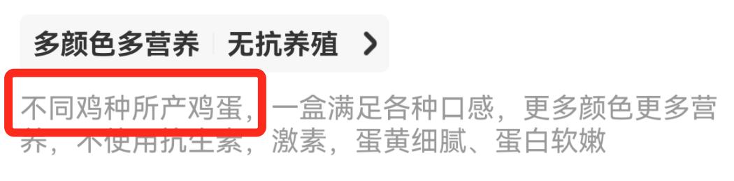 其实,谜底就在谜面上。在缤纷蛋的介绍里,就写了这些色彩不同的蛋是“由不同鸡种生产的”。