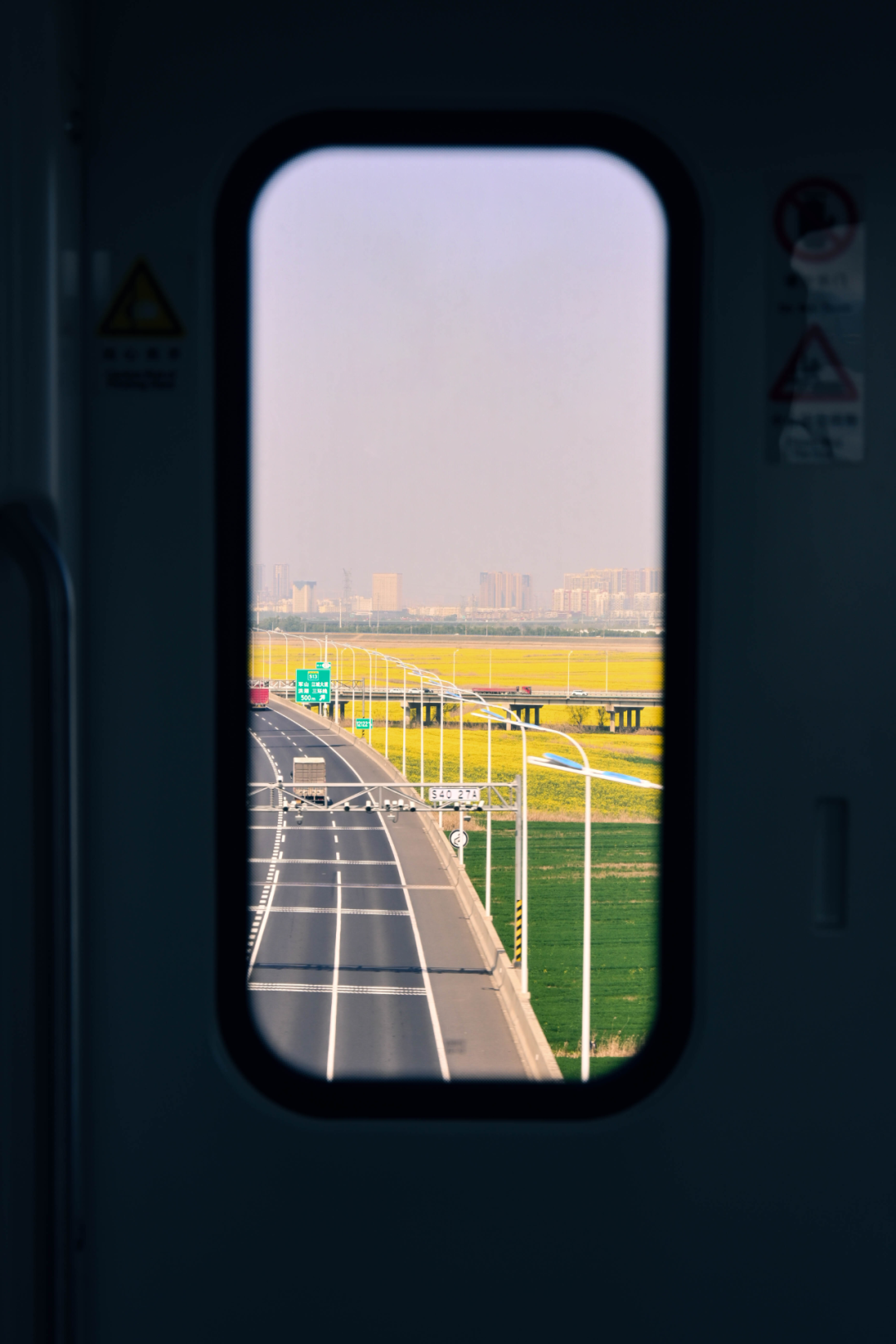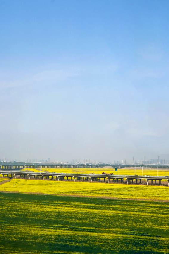 窗外,金色的油菜花在春日暖阳下铺展,就像一片金色的海洋。我忍不住惊呼:“哇,这不就是我的专属观景台吗?” 车厢里顿时热闹起来,不少人跑到车门前拍照。我也赶紧站到车门前,把车窗当作天然的取景框,将美景都“装”进手机里。
