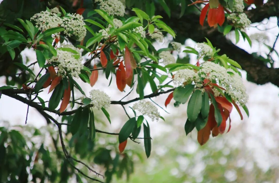 每年10—11月,石楠花正常授粉后会结出长度在半厘米左右的红色球形果实,这是鸟类在冬天最容易获取的食物之一。而石楠花散发出的“异味”虽可能给人类感官带来不适感,却对昆虫传粉至关重要。如此种种,都体现出石楠的良好生态价值,也使其成为武汉地区园林绿化中常见的优质树种。