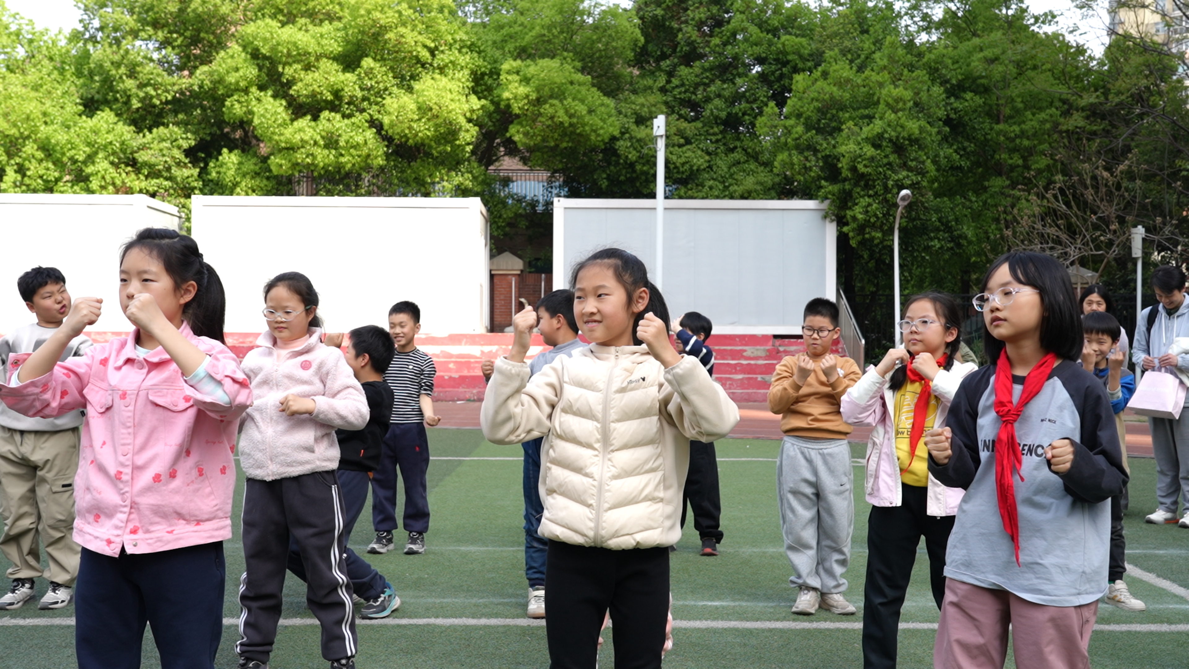 同学们活跃互动,在小组三位志愿者(吴梓涵、吴先龙、张馨阳)的带领下学习五禽戏之一的虎戏,在一招一式中感受中医文化的魅力。