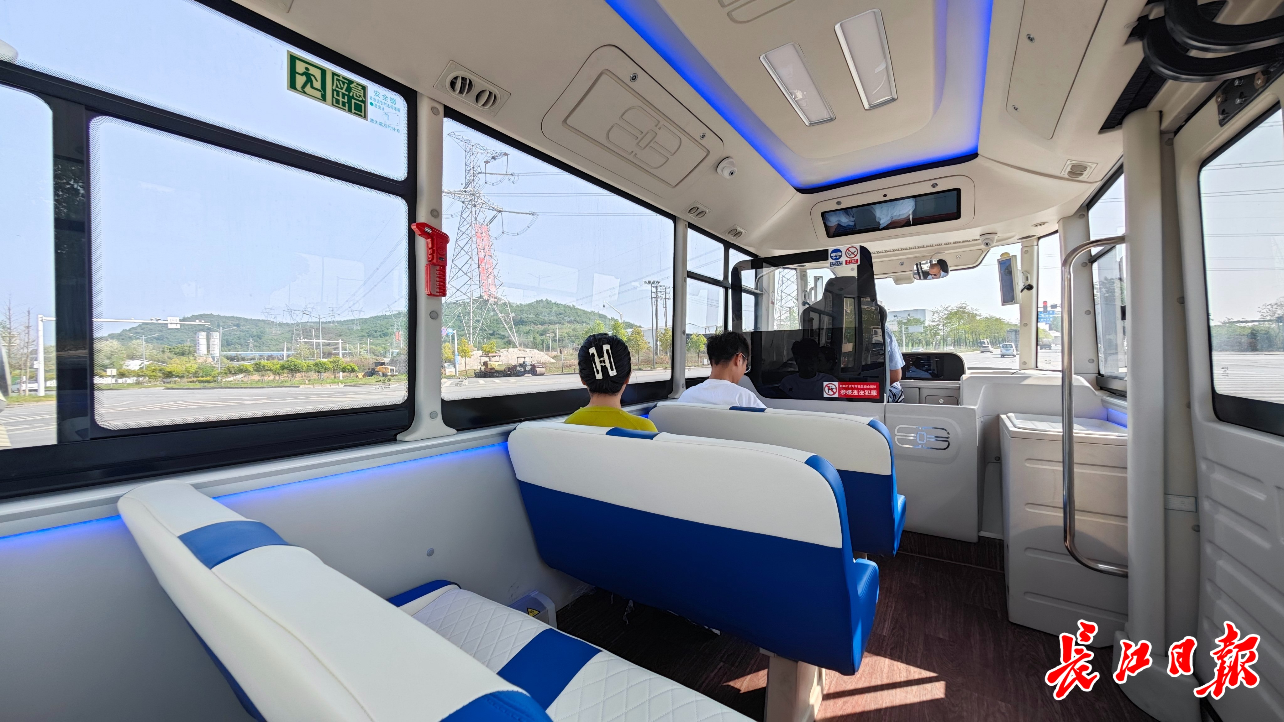 10日中午两点半,记者从小军山地铁站搭乘其中一辆小巴,车上配有显眼的线路标识和停靠站点指示,车辆可搭乘9人,并配备一名安全员,负责监测车辆运行情况。在行驶途中,一旦出现行人和障碍物,车辆就会提前20米减速,精准避让。
