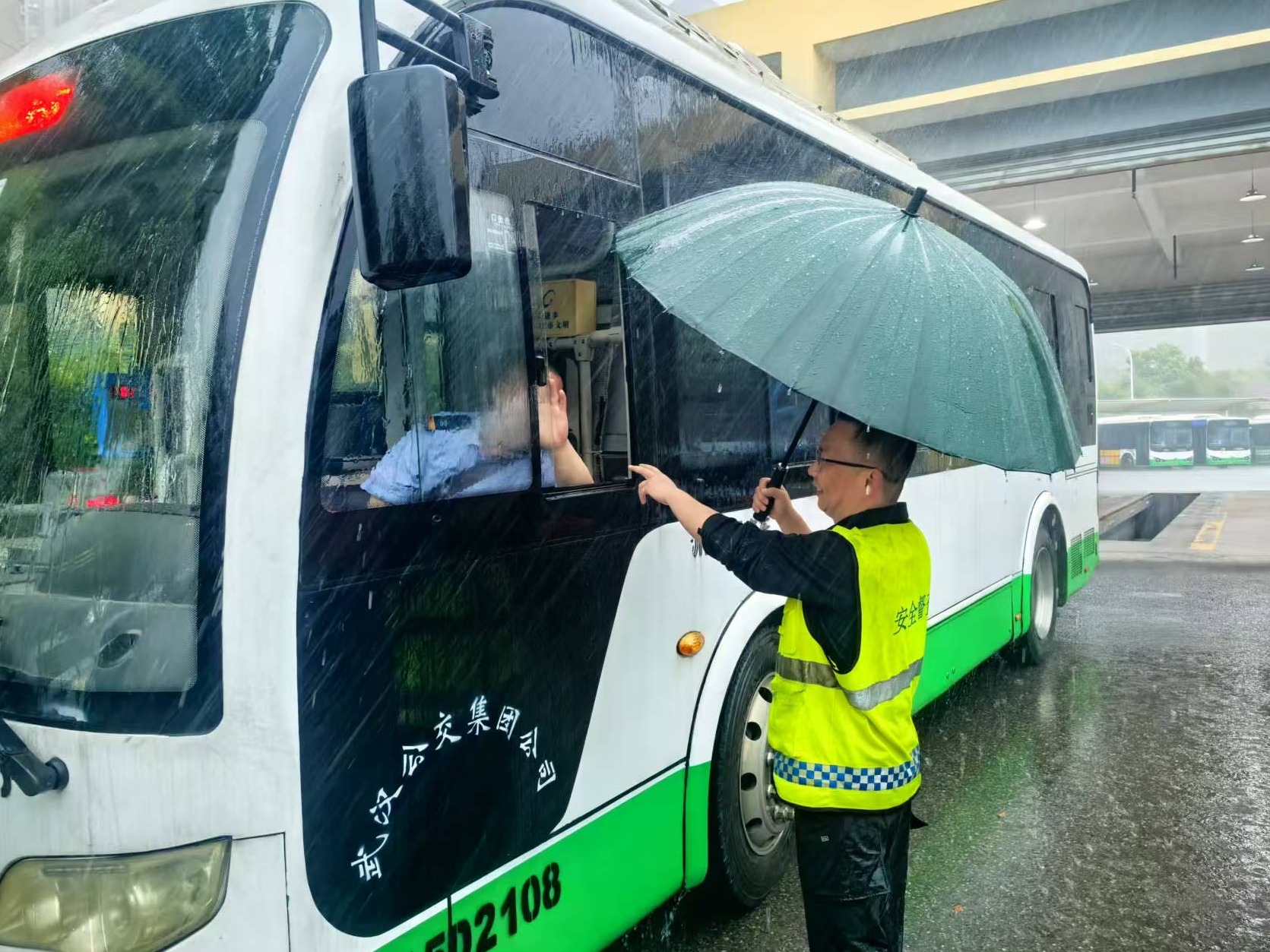 “每站都多停5秒钟,确保大雨天气里的乘客都顺利上车”“雨天路滑、注意多观察、保持与电动自行车、非机动车的横向距离。”下午1时许,天气阴沉,雷声阵阵,眼见要下大雨,706路线管员张利国、717路线管员祝智明等一线管理员挨个检查上线车辆的灯光雨刮、底盘刹车等机件,确保运营车辆安全的同时,做好员工异常天气行车再培训,要求司机每站都多停五秒钟,等乘客上车落座后再开车,遇跑步赶车的乘客,则一定要耐心等待,不急不慌,安全第一。