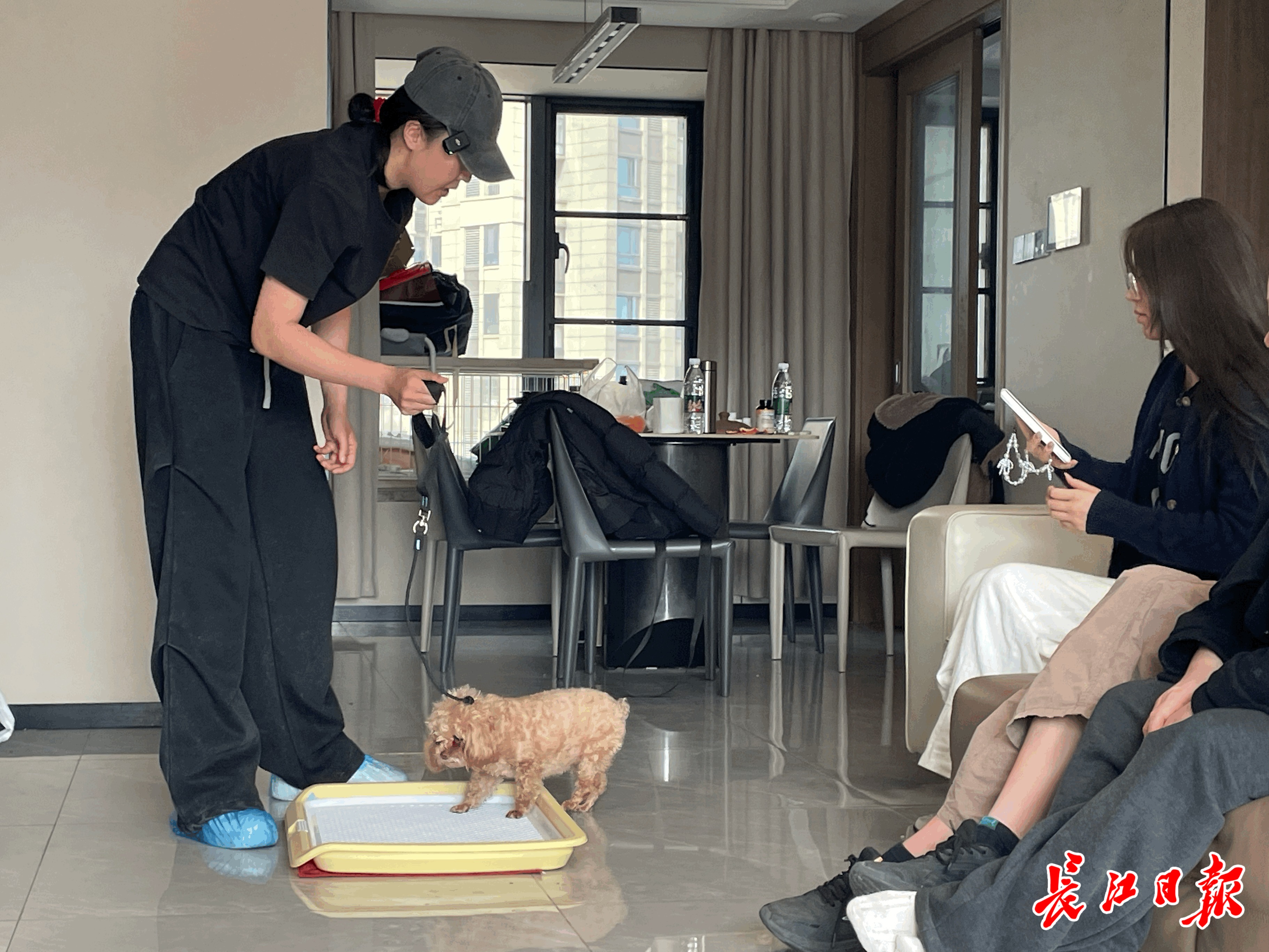 训犬师艾晴正在为一只2个月大的幼犬“小满”进行如厕训练。长江日报记者 尹勤兵 摄