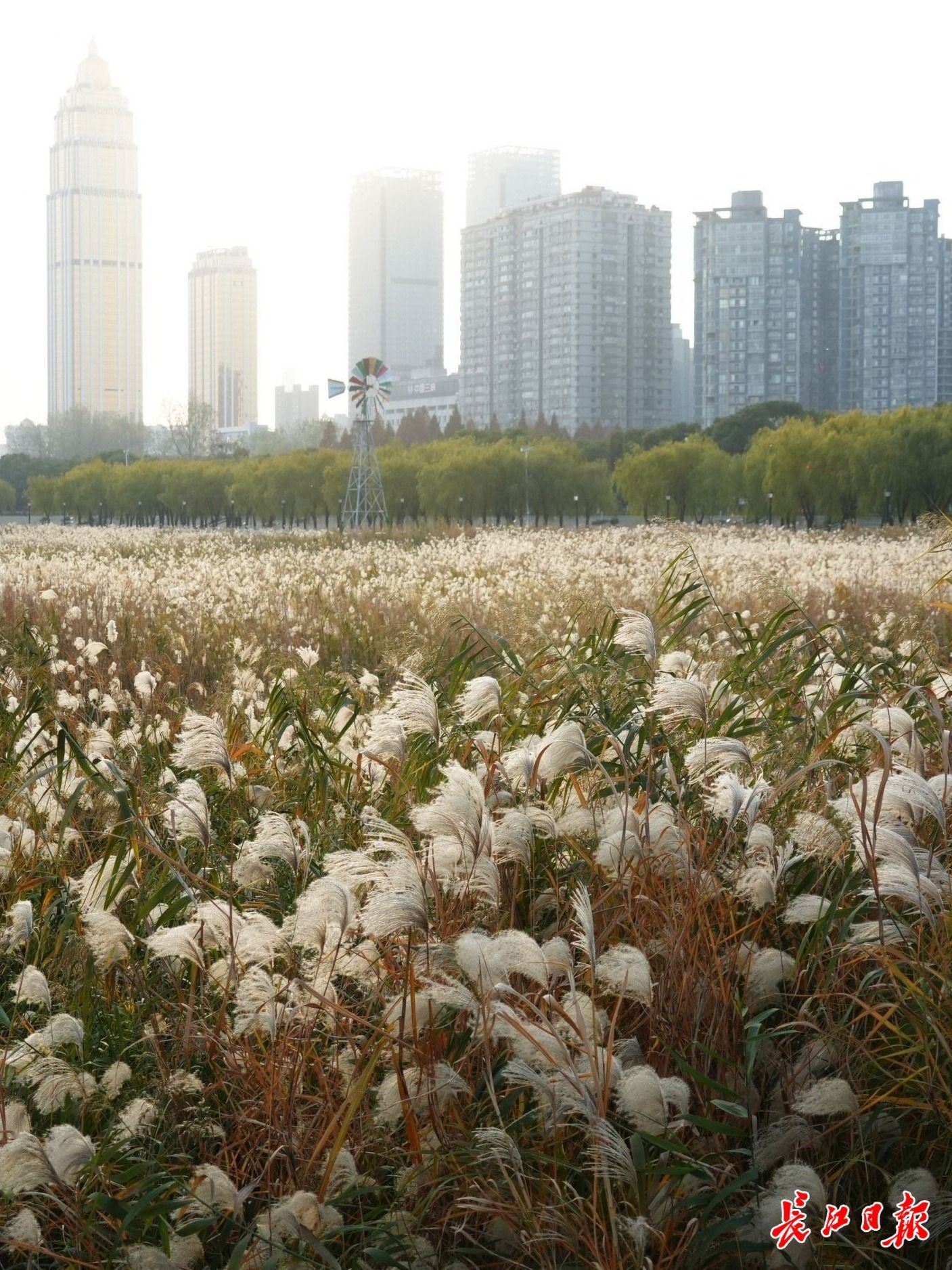 汉口江滩芦荻绽放,绵延6公里花絮如雪,吸引众多市民前来。长江日报记者何晓刚 摄