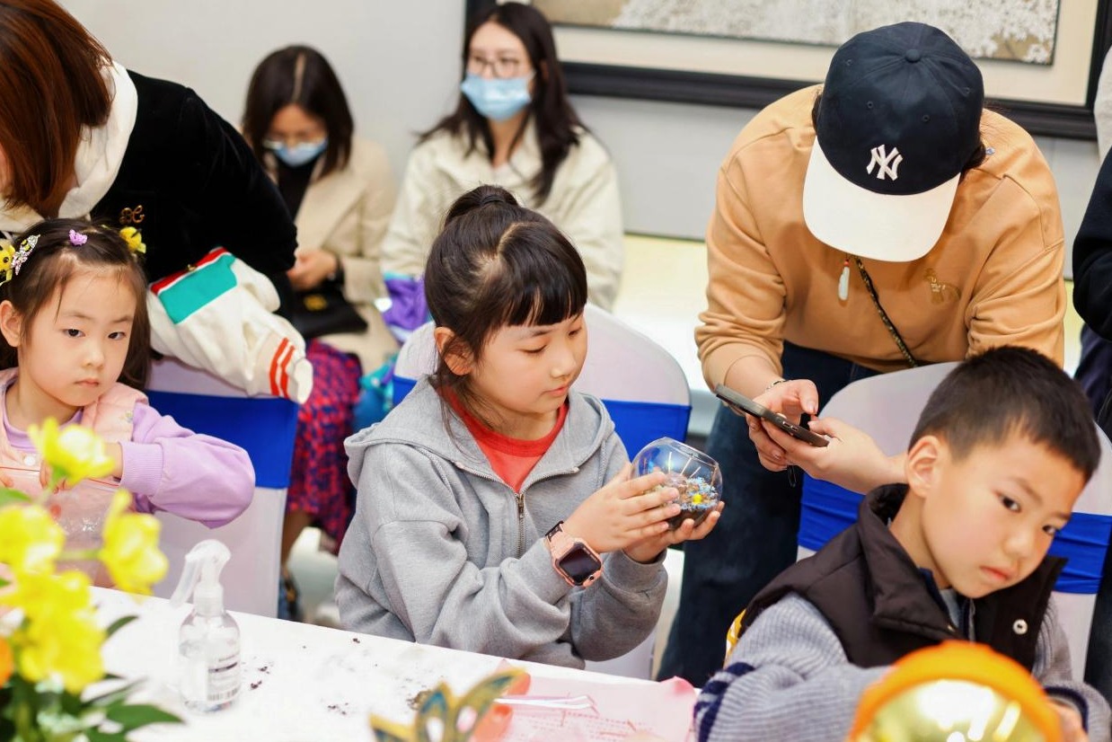 家长为孩子的作品拍照。