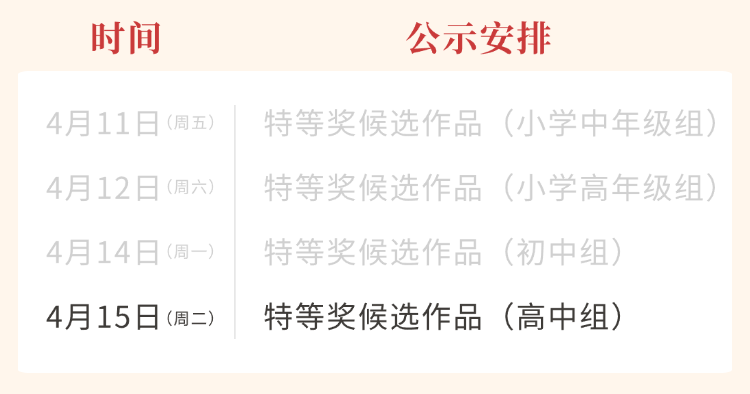 03 质量、原创、真实,是楚才评奖的核心标准。同时考虑各年龄段的能力差异,兼容并包。
