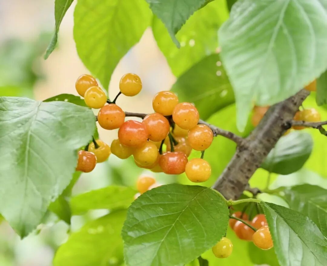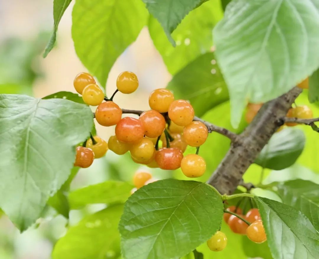 枝头小樱桃晶莹剔透,娇嫩欲滴。胡维佳 摄