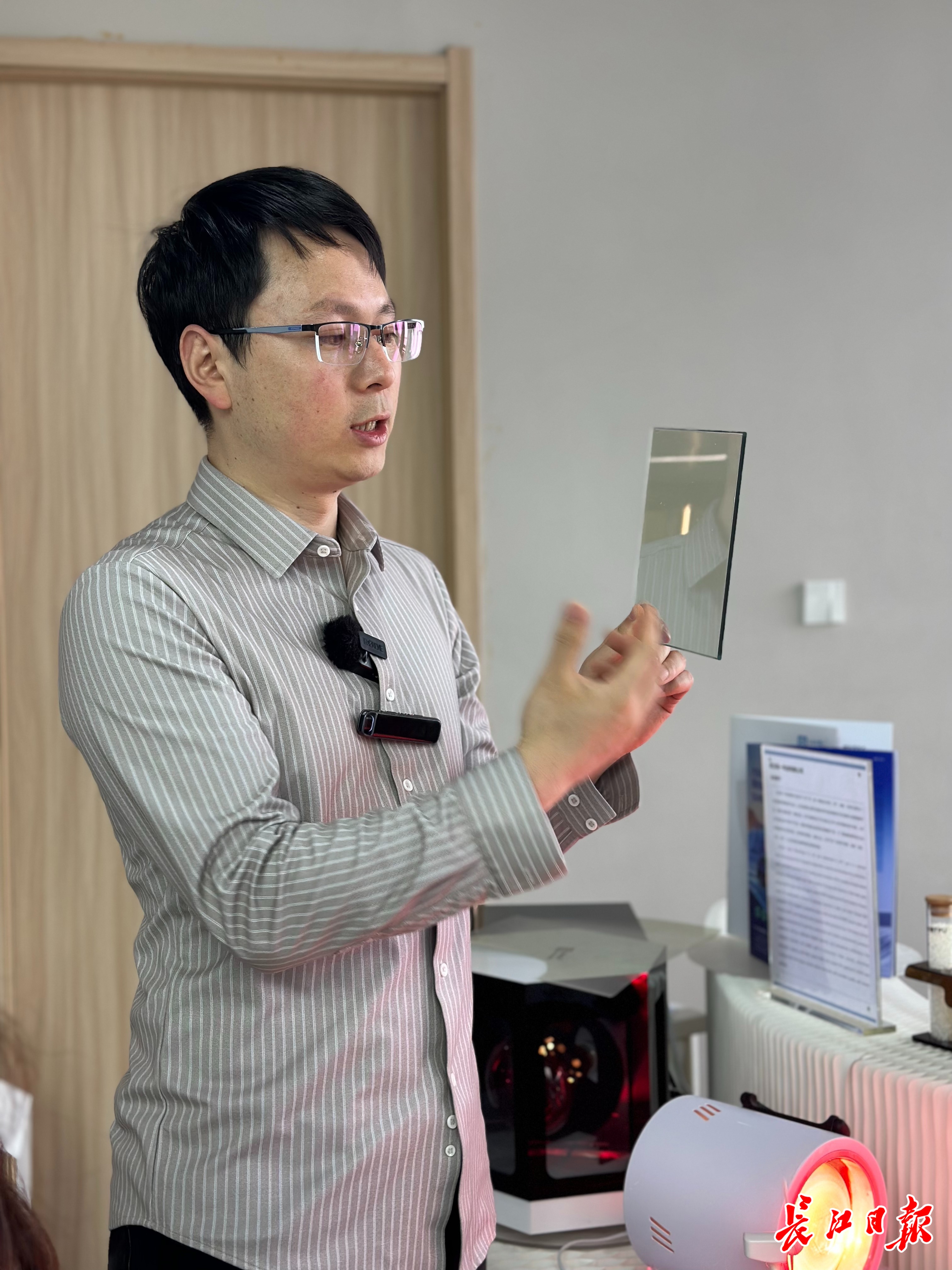 武汉简一科技有限公司总经理胡保明展示玻璃样品。记者冯雪 摄