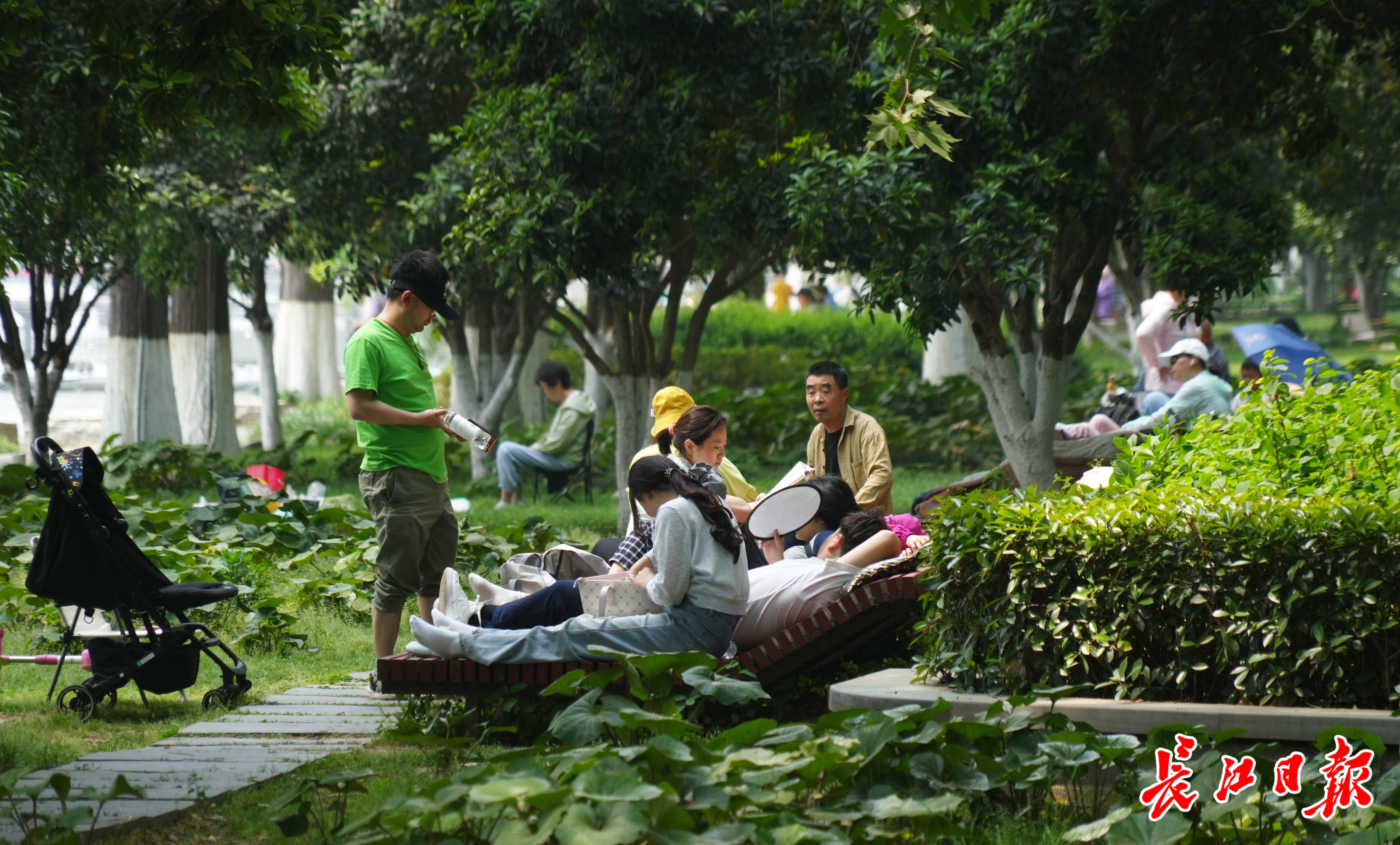 躺椅建在绿树中间,十分阴凉。 长江日报记者何晓刚 实习生杨星辰 摄