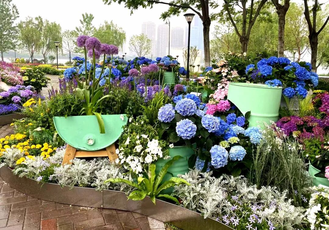 滨水广场布置的花卉应用场景之一。黄林芳 摄