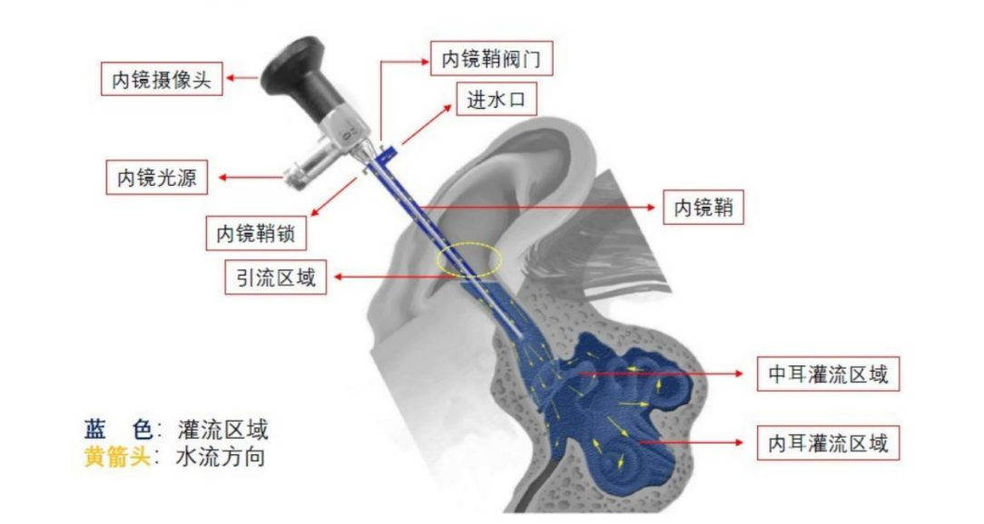 作为我国耳内镜外科领域的开拓者,廖华教授团队自主研发的持续灌流模式耳内镜手术(CIM-EES)技术,正在重塑全球耳科手术标准。该技术通过构建动态平衡的水下操作环境,革命性解决了传统术式中视野模糊、热损伤控制难等行业痛点。术中通过将一定压力的等渗溶液持续灌注于耳内镜术腔,并通过负压吸引引导水流流出,建立起持续稳定清晰的水下手术操作环境,有效解决了传统耳内镜手术中镜头易污染、术腔出血影响视野等难题。