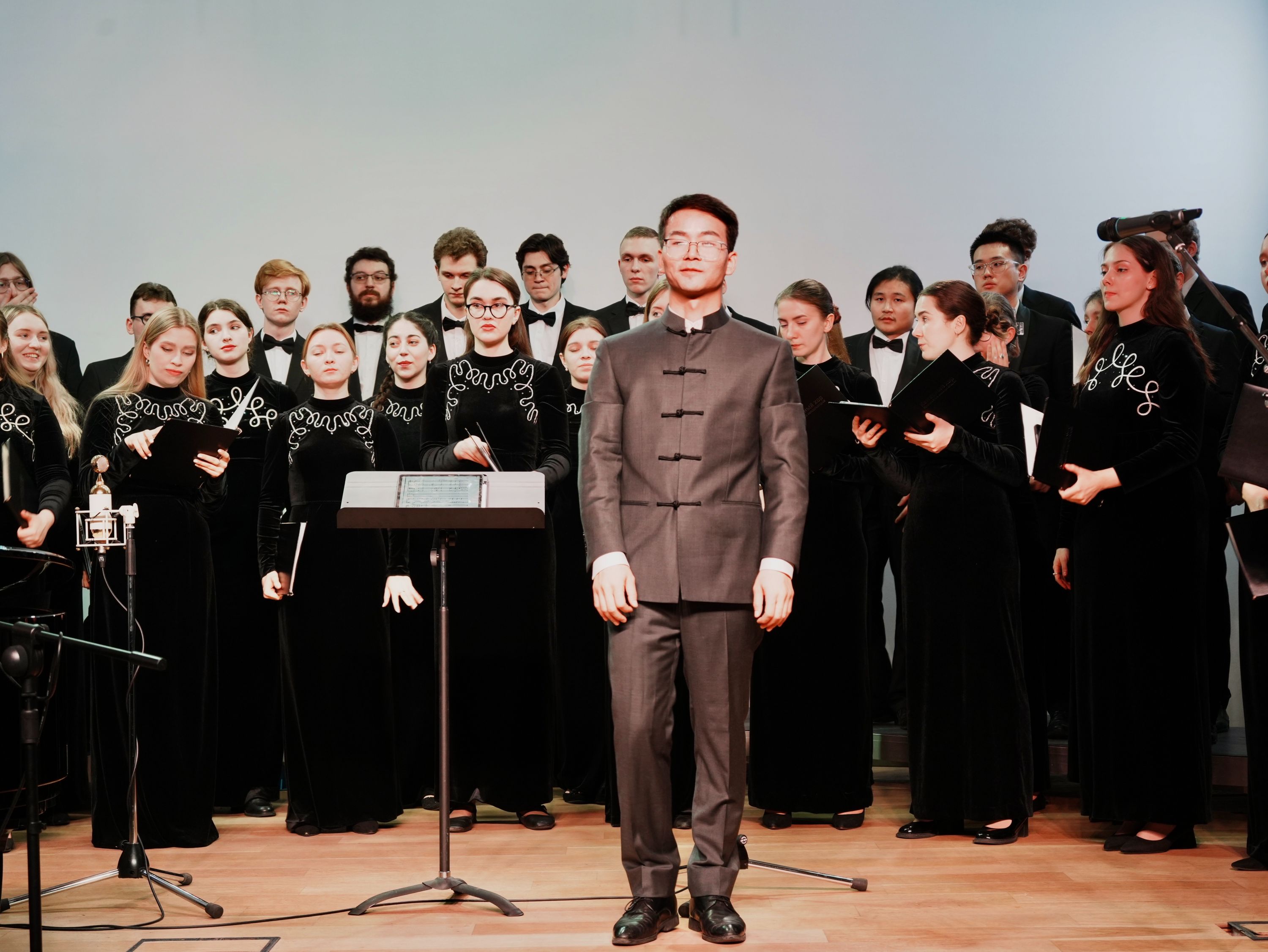 他是华中师范大学毕业生、现莫斯科柴可夫斯基音乐学院博士生徐偲。他担任这场音乐会的指挥。参演的莫斯科柴可夫斯基音乐学院室内合唱团是俄罗斯最著名的合唱团之一,很多团员在国际合唱指挥大赛中获奖。