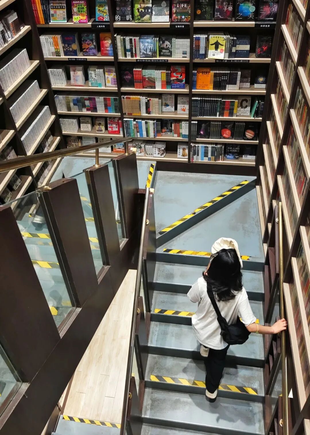 女孩在钟书阁拾级而上,两侧是浩渺书海。今天是世界读书日,恍然发觉阅读如同一座桥梁:它横跨时空,一端连着当下的我们,一端通向充满无限可能的未来;每翻开一本书,就是踏上桥梁的一步,在字里行间汲取力量,积攒智慧,向着更辽阔的未来前行。