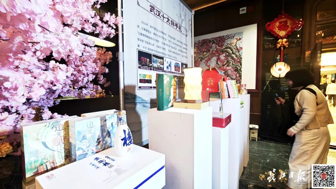 一楼大厅的“武汉礼物”精品展台,