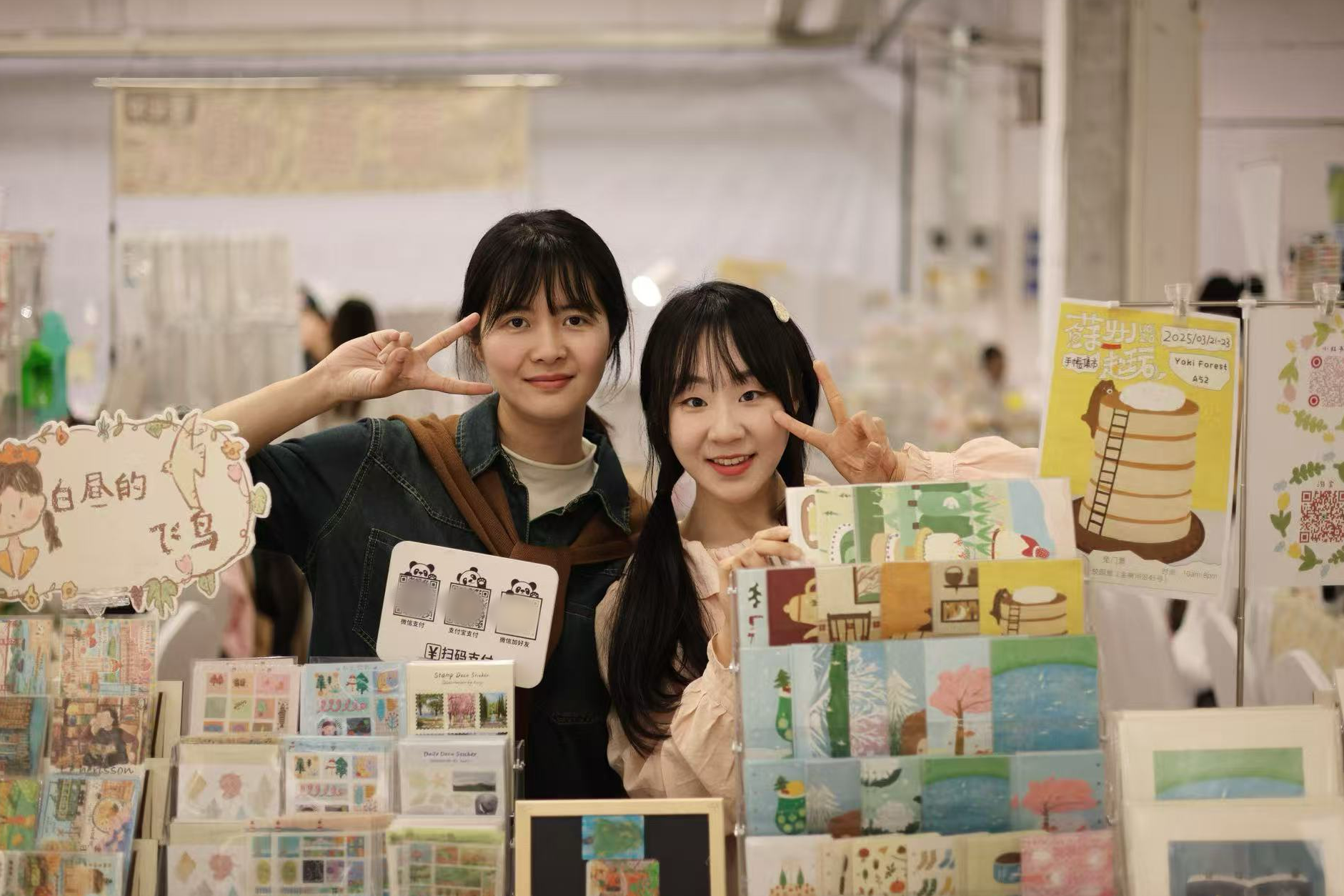 张紫薇(左)在集市活动。受访者供图